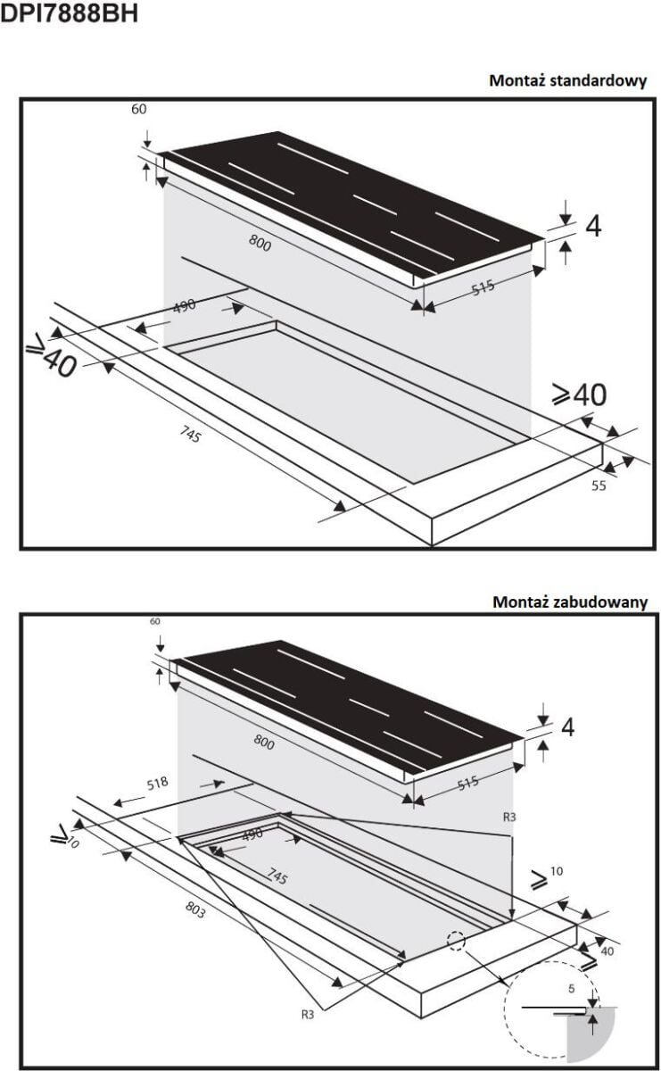 - prawa strefa: 40 x 23 cm / 3700 W