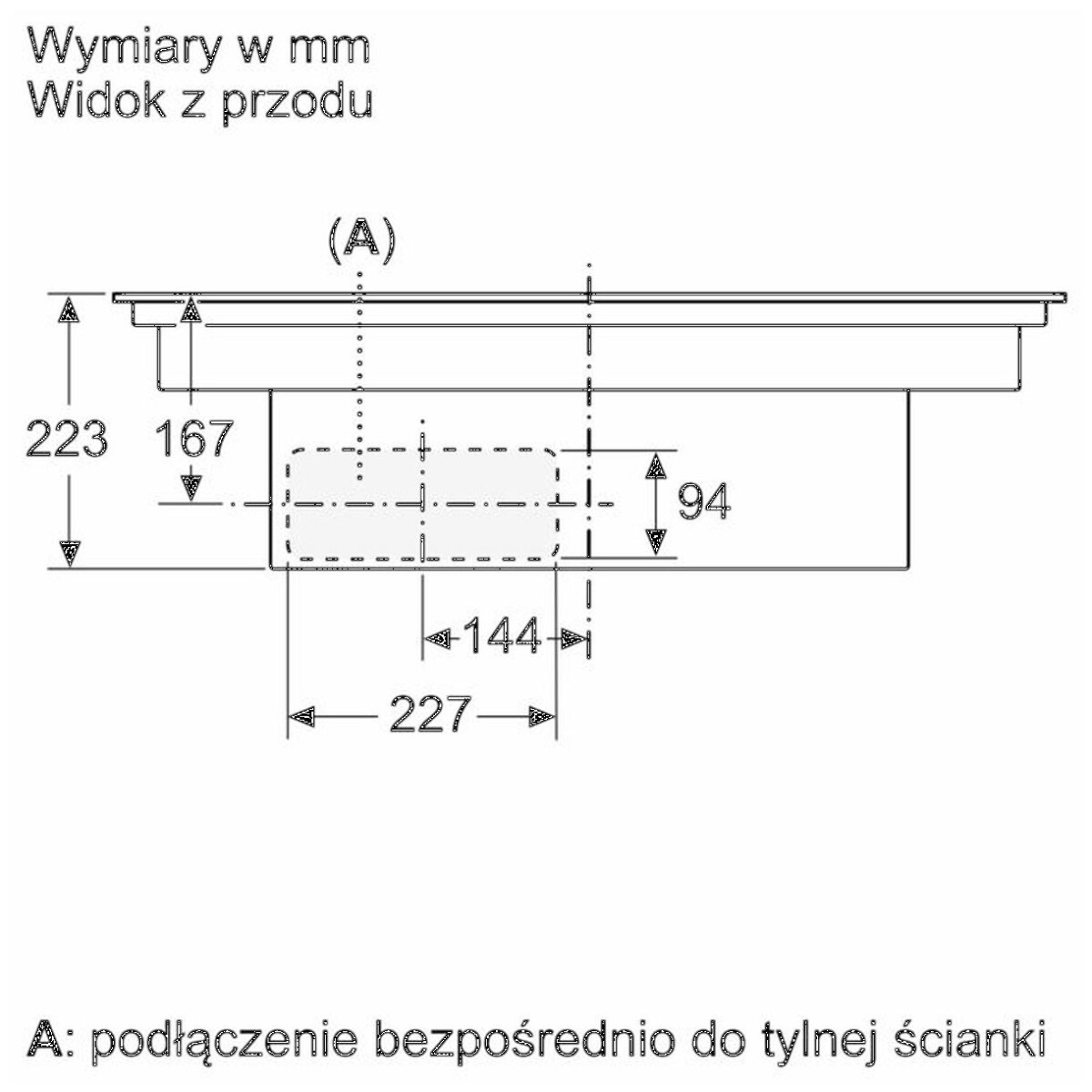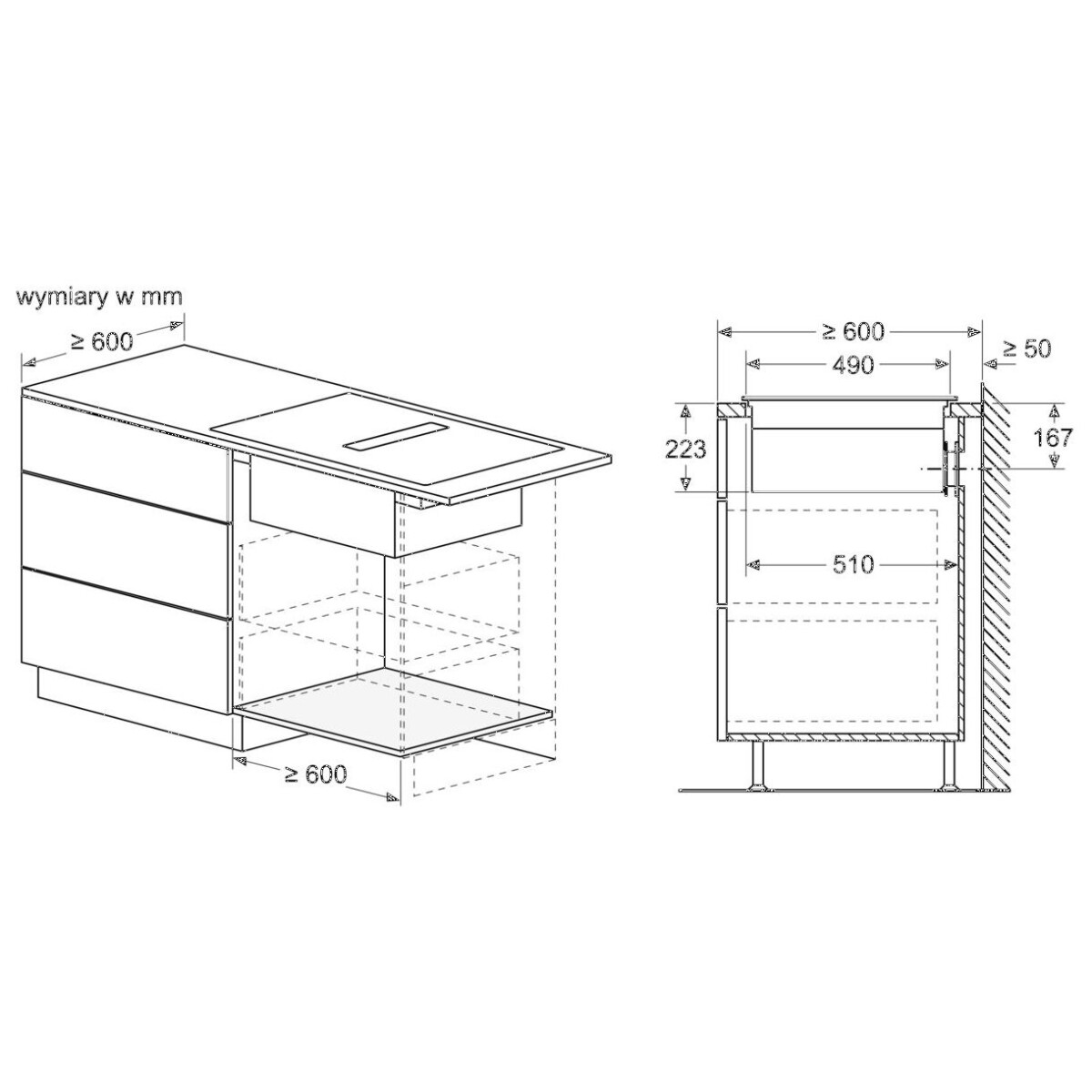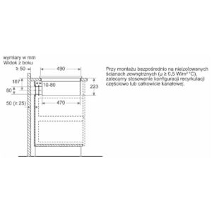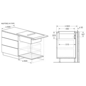 | Wymagane wymiary montażowe wnęki (WxSxG mm) | 223 x 750 x (490 – 490) |