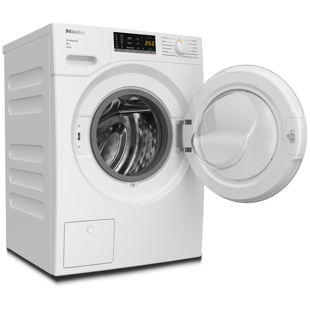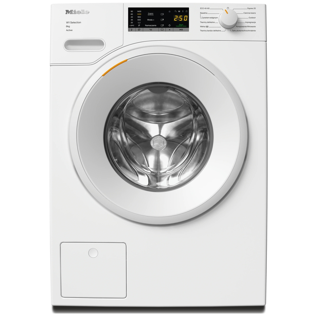 Obsługa pralki ładowanej od przodu W1: WSA123 WCS 8kg Active (SKU: 12725350) odbywa się za pomocą pokrętła wyboru i wyświetlacza EasyControl żółty zintegrowanych z panelem z nachyleniem 5°. Programowanie startu z opóźnieniem do 24 godz. pozwala ustawić rozpoczęcie cyklu a wskazanie czasu pozostałego monitoruje jego przebieg. Funkcja AddLoad umożliwia dorzucenie prania po starcie.