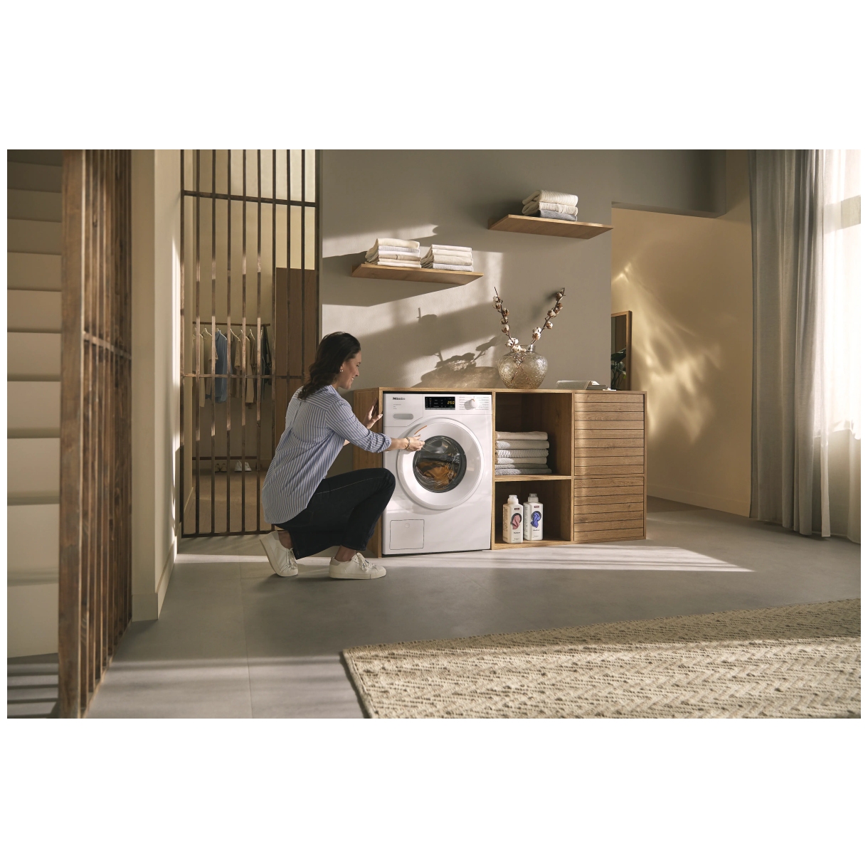 Urządzenie wyposażono w silnik ProfiEco zapewniający efektywną pracę. Bęben SoftCare chroni tkaniny dzięki unikalnej strukturze. Konstrukcja jest testowana na 20 lat użytkowania co potwierdza jej trwałość. Automatyka wagowa, licznik wody i regulacja piany optymalizują zużycie zasobów. Szuflada na środki AutoClean czyści dozownik.