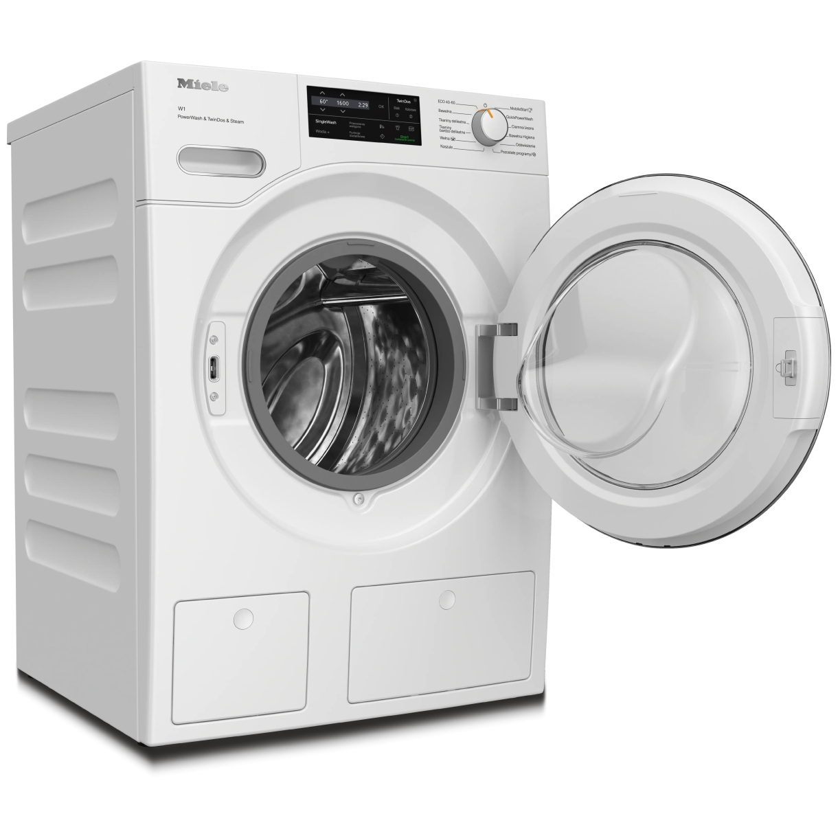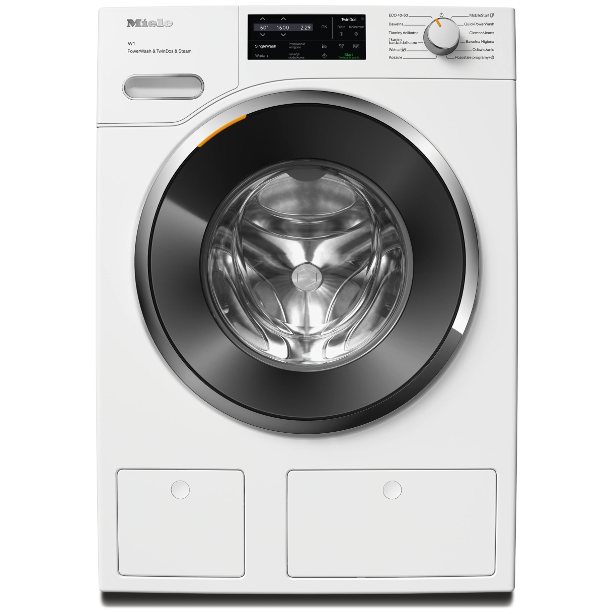 PowerWash zapewnia intensywne czyszczenie optymalizując zużycie wody/energii. TwinDos automatycznie dozuje UltraPhase 1 i 2 redukując zużycie detergentu. CapDosing wykorzystuje specjalistyczne kapsułki. System pary SteamCare redukuje zagniecenia i odświeża. Higieniczność przeciwwirusowa usuwa >9999% bakterii i >999% wirusów. Ochronę zapewnia System ochrony wodnej Watercontrol-System oraz zabezpieczenie przed dziećmi z kodem PIN.