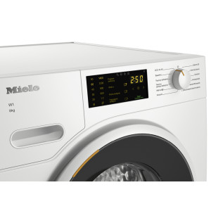 Pralka ładowana od przodu W1: Z bębnem SoftCare 1–8 kg i prasowaniem wstępnym.