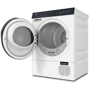 Z pojemnością załadunku 9 kg urządzenie jest przygotowane sprostać potrzebom większych gospodarstw domowych, zapewniając efektywne suszenie znacznych ilości tekstyliów.