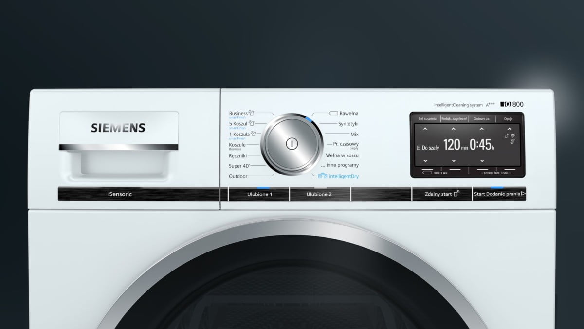 Zastosowane technologie automatyka suszenia Bosch/Siemens AutoDry, optymalizacja suszenia Siemens intelligentDry, tłumienie drgań Bosch/Siemens AntiVibration Design, usuwanie zagnieceń za pomocą pary Siemens smartFinish, zdalne sterowanie Siemens Home Connect