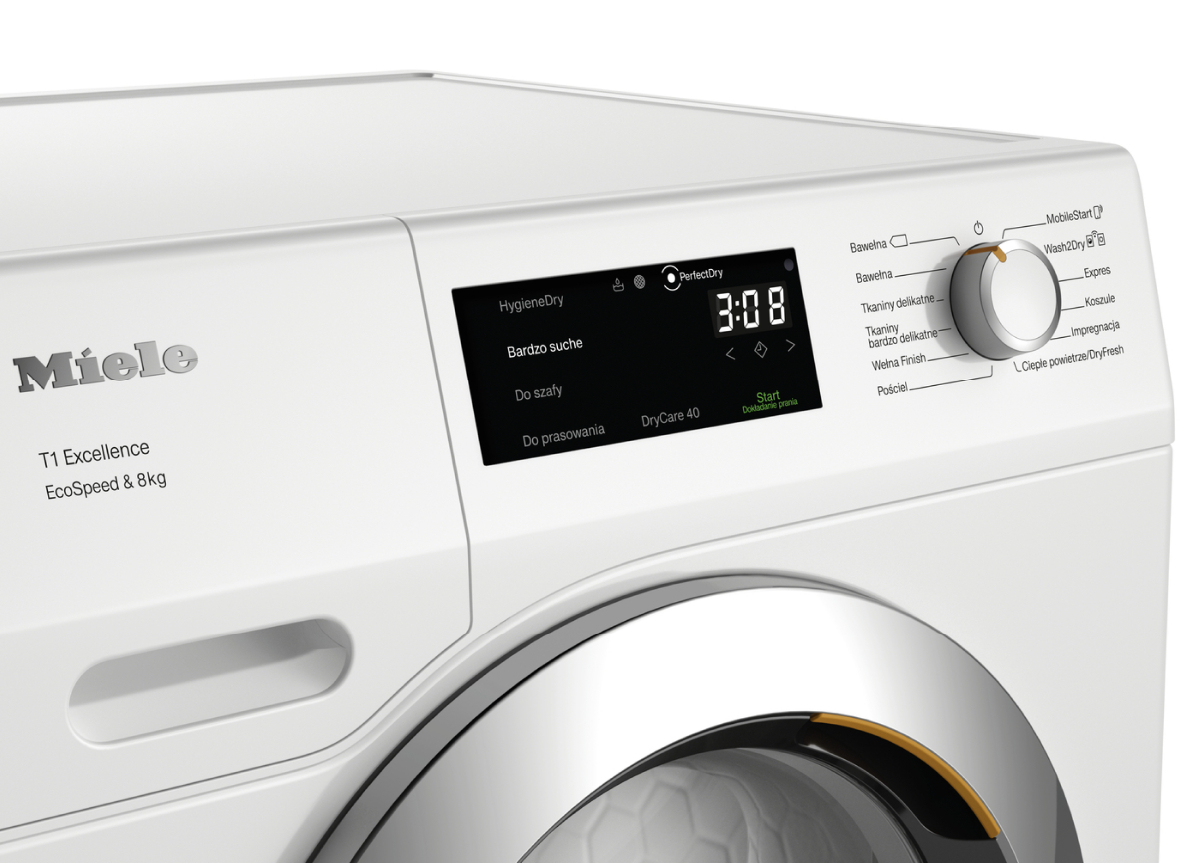 Suszarka z pompą ciepła T1: Z A+++ i DryCare 40 do wydajnego i delikatnego suszenia.