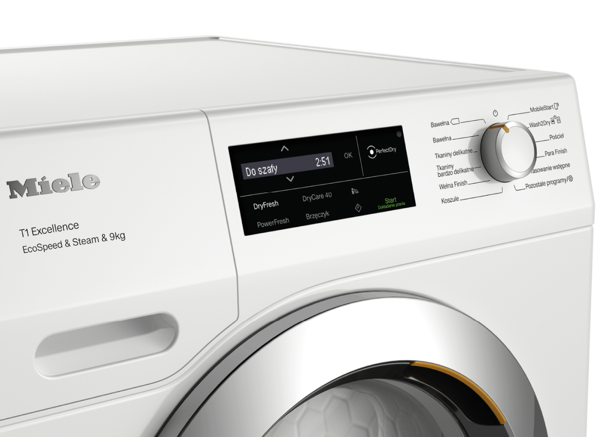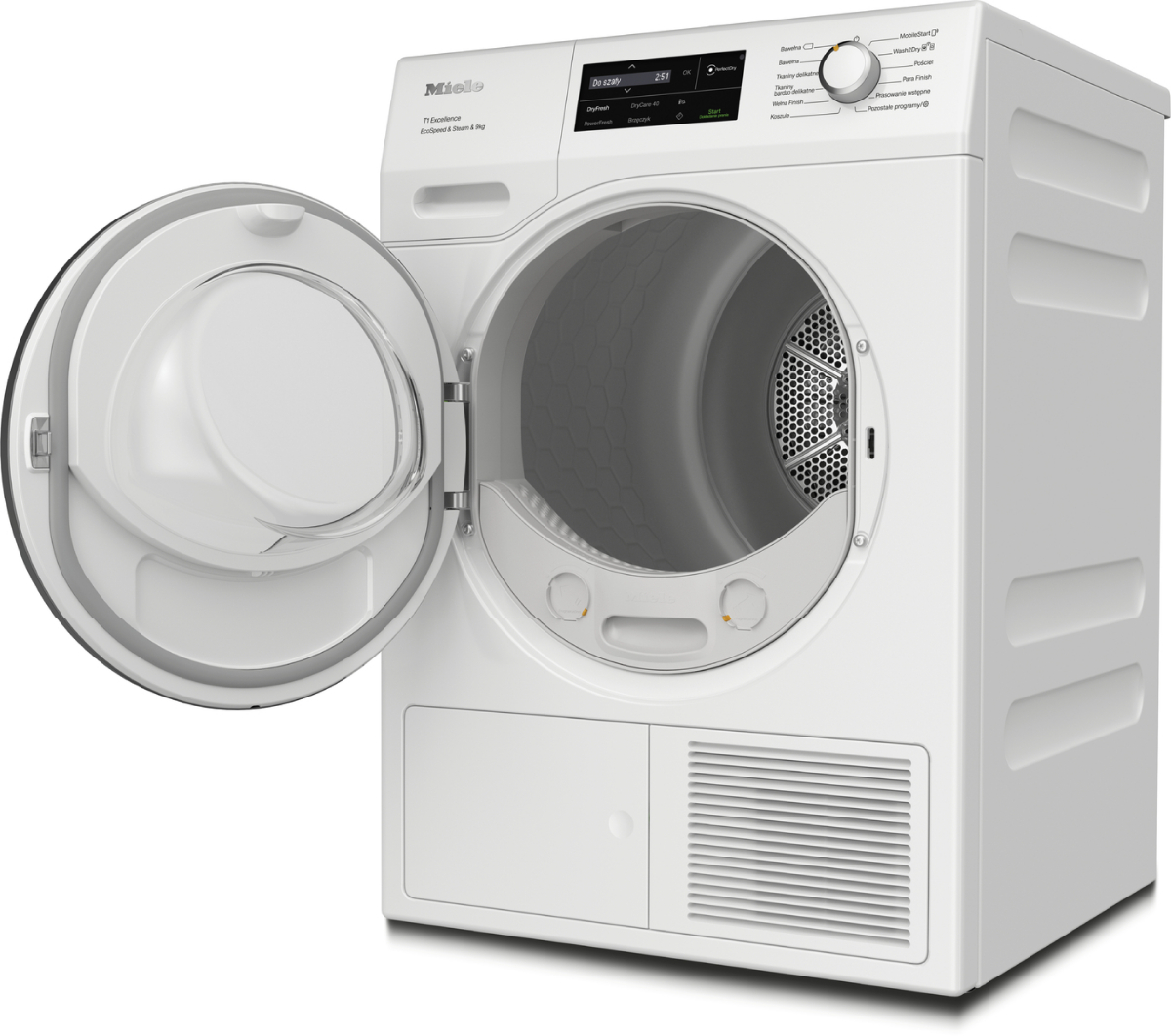 Suszarka z pompą ciepła T1: Ze SteamFinish, DryCare 40 i SilenceDrum dla delikatnego suszenia.