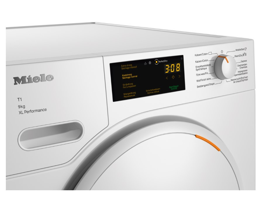 Suszarka z pompą ciepła T1: Miele@home i ładowność 9 kg dla inteligentnej wydajności.