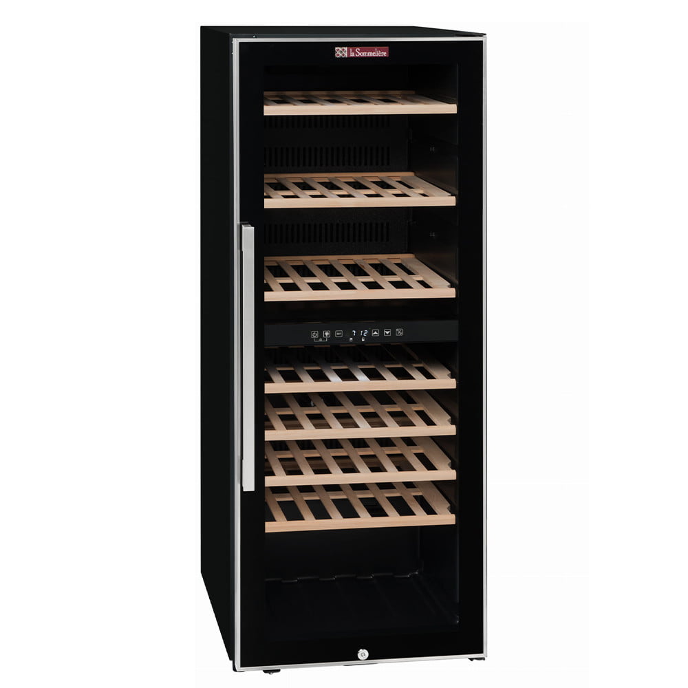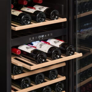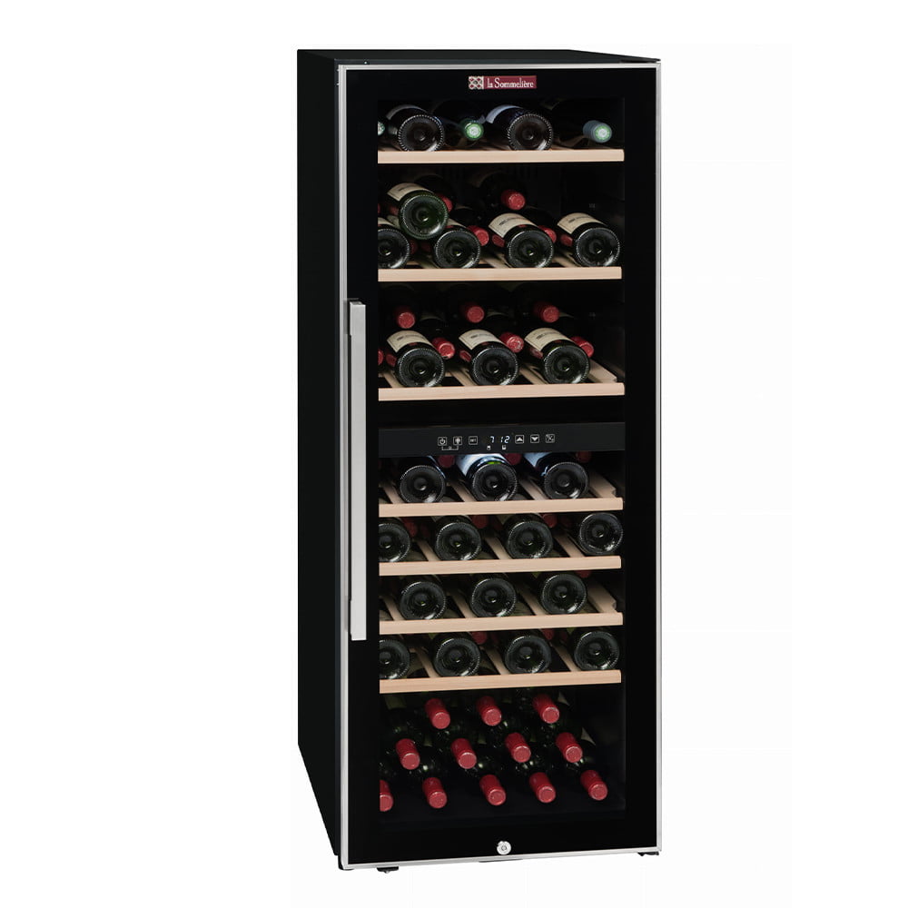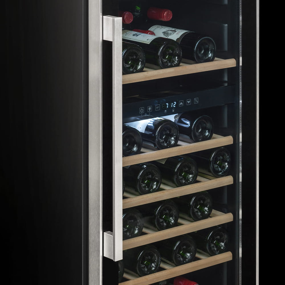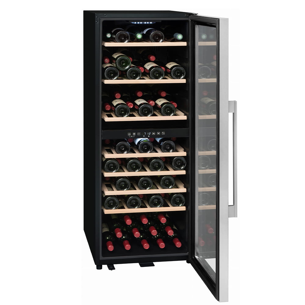 Winiarka wolnostojąca ECS80.2Z. Dwustrefowa o pojemności do 75 butelek wina.