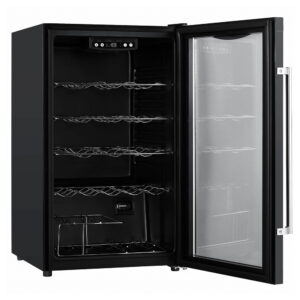 Winiarka wolnostojąca BRGWE59L przeznaczona do serwowania wina. Jednostrefowa o pojemności do 59 butelek wina.