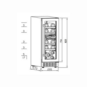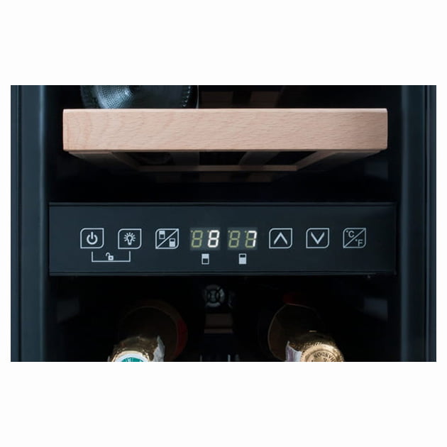 Winiarka do zabudowy pod blatem. Dwustrefowa o pojemności do 17 butelek wina.