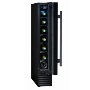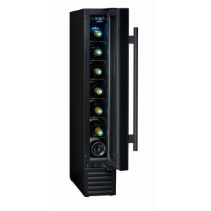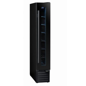 CBU7S1B chłodziarka do wina do zabudowy meblowej pod blatem. Jednostrefowa o pojemności do 7 butelek wina.