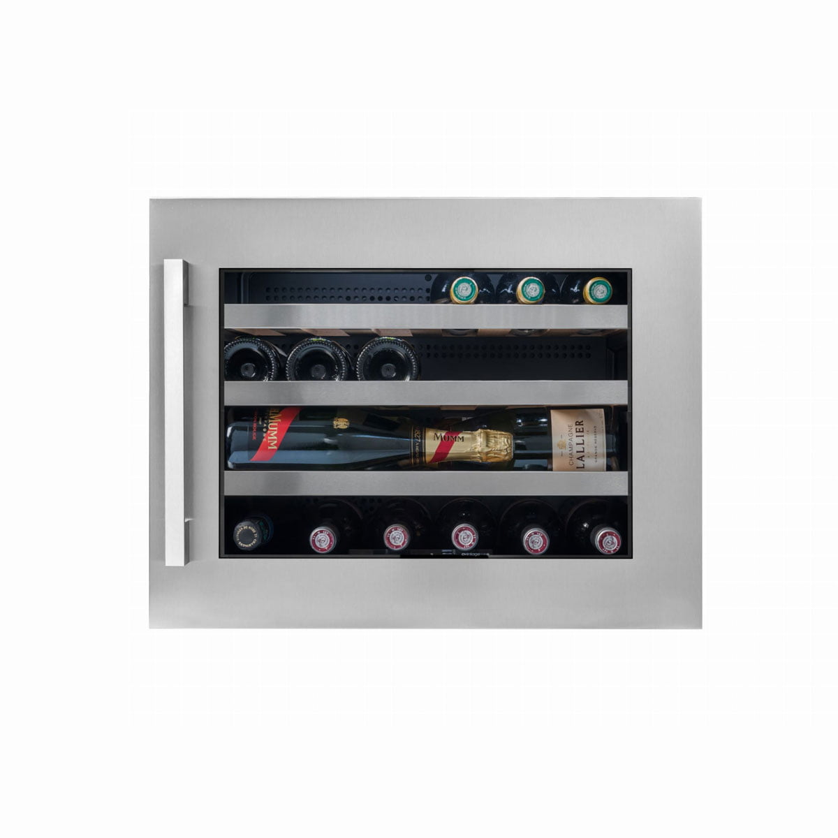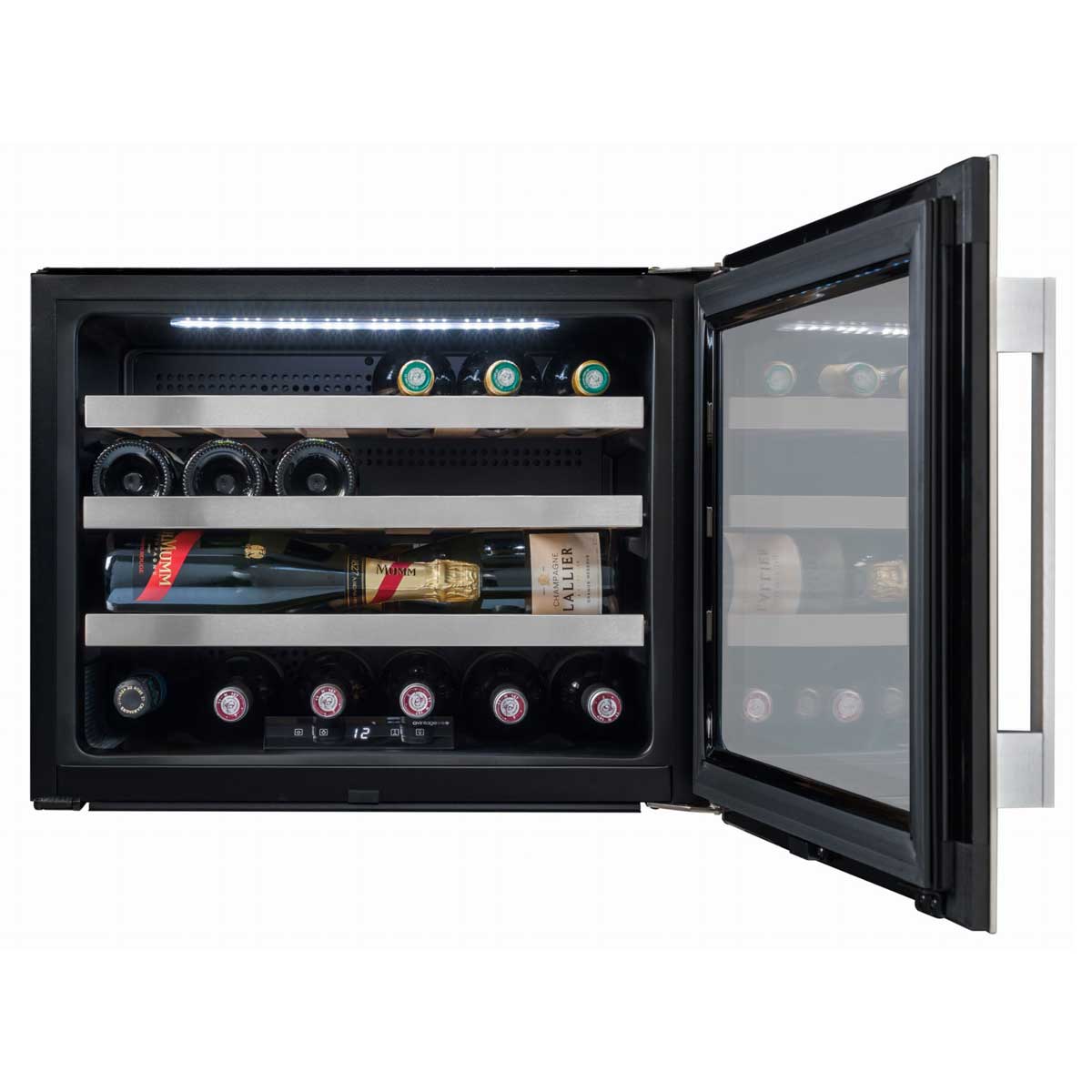 Winiarka do zabudowy w słupku, jednostrefowa o pojemności 24 butelek wina.