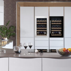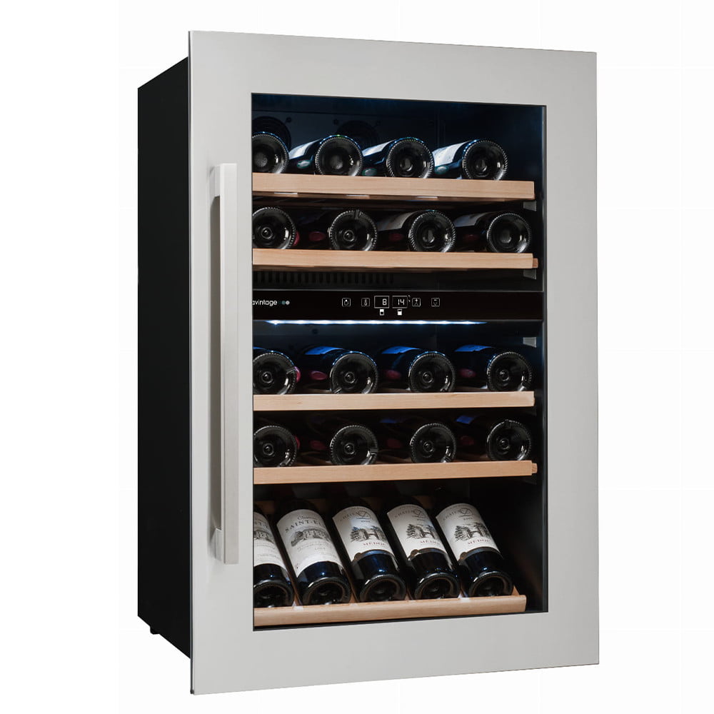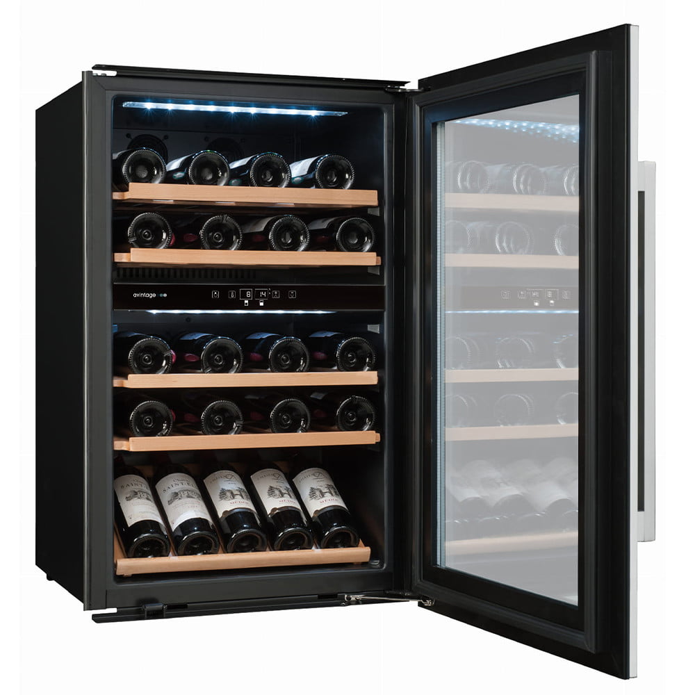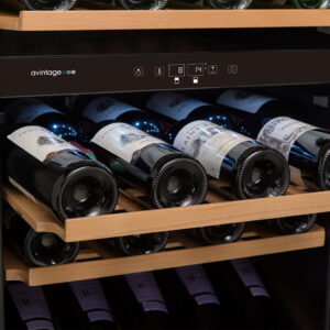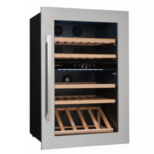 Winiarka AVI47XDZA do zabudowy w słupku. Dwustrefowa o pojemności do 52 butelek wina.
