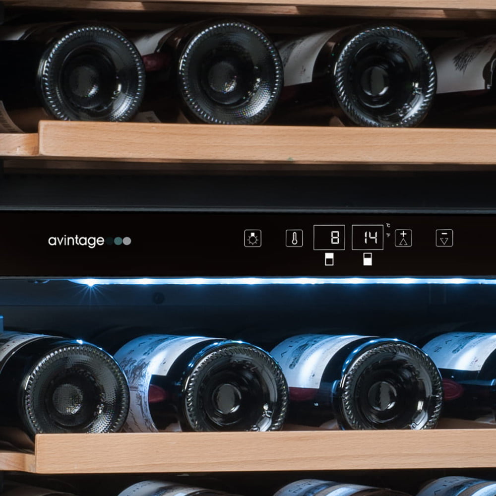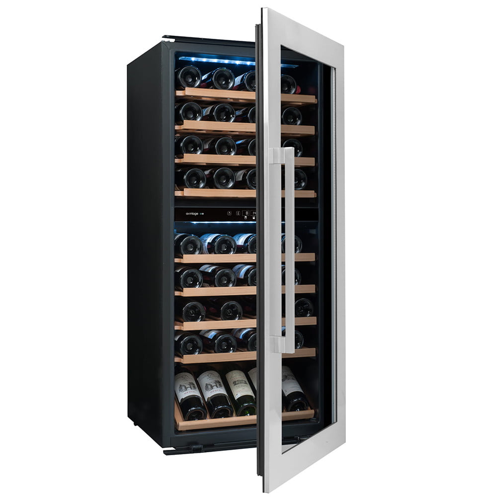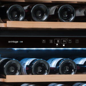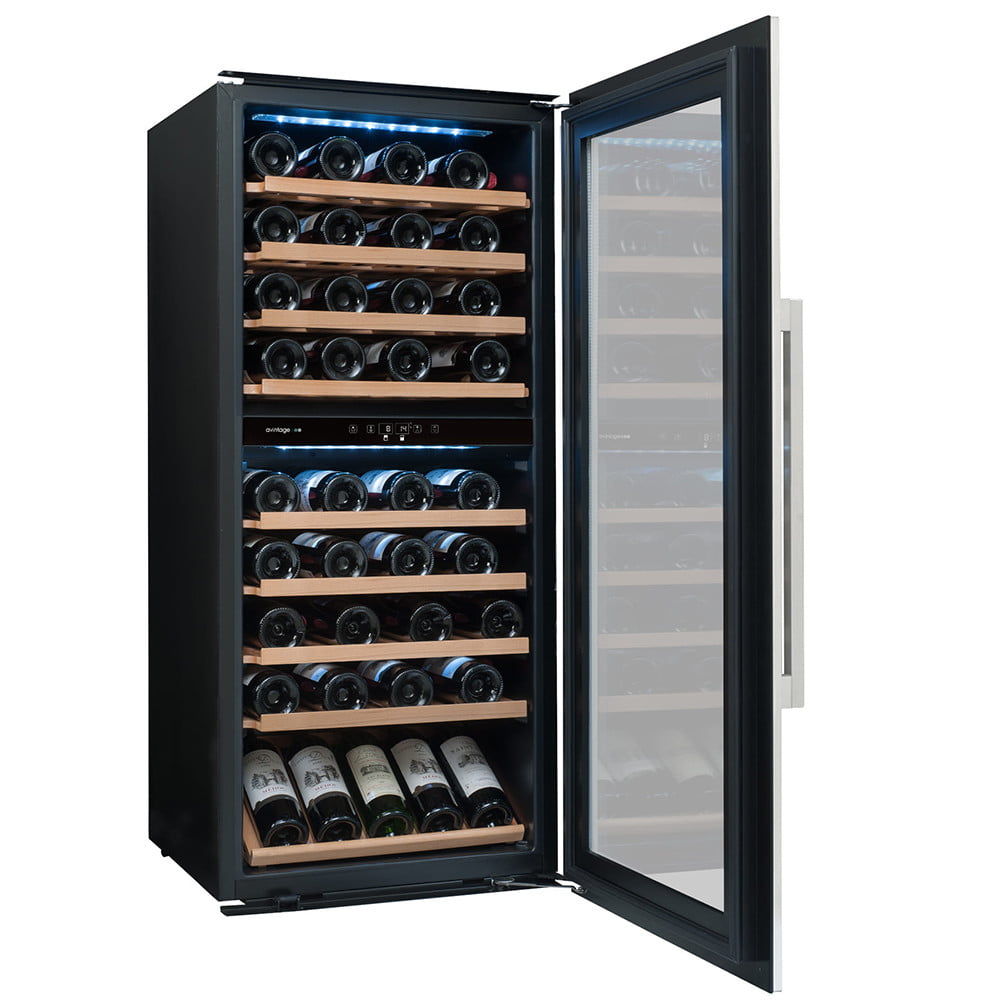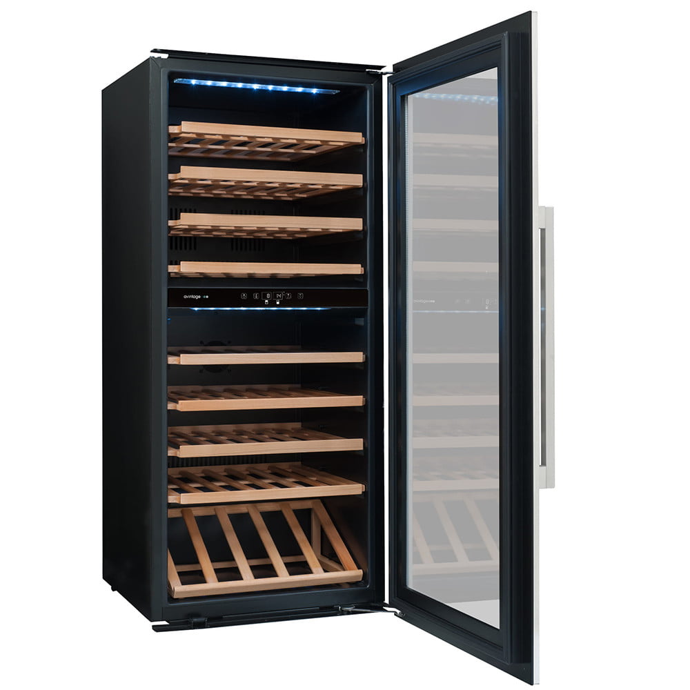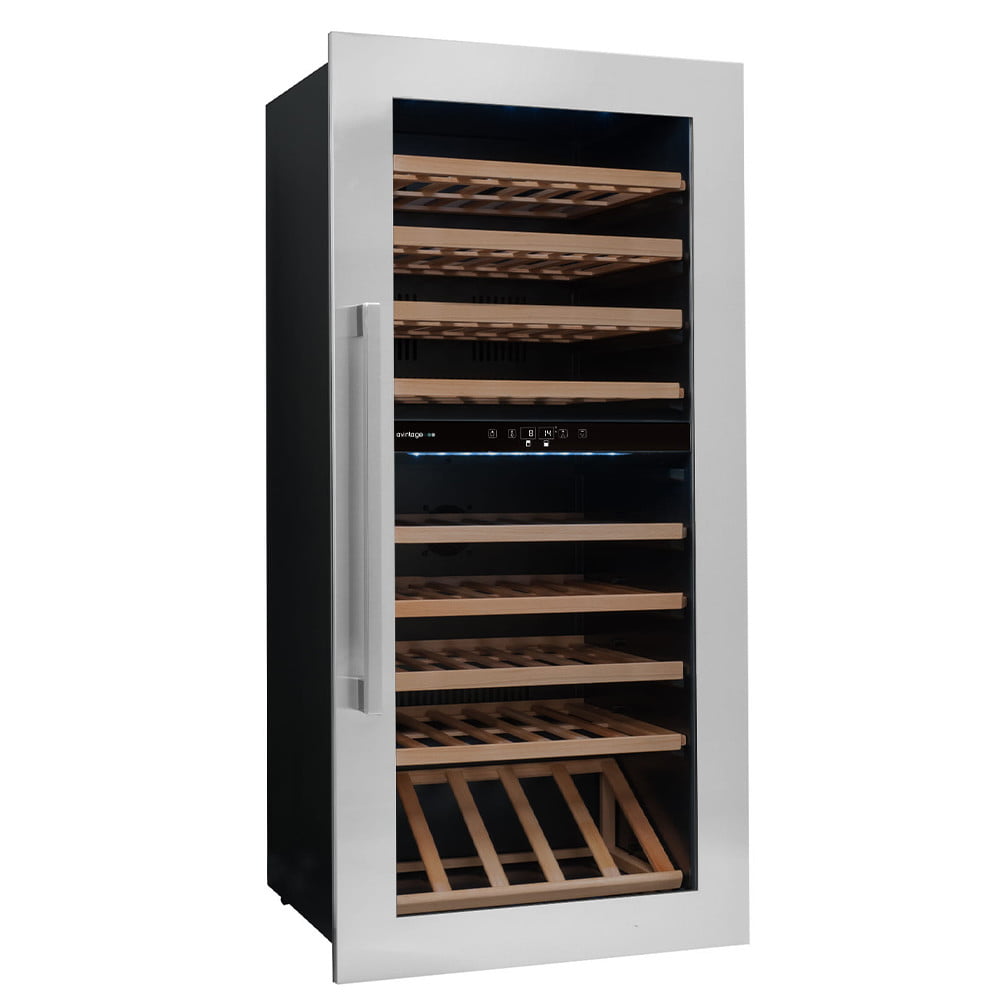 Winiarka AVI81XDZA do zabudowy słupku. Dwustrefowa o pojemności do 79 butelek wina.