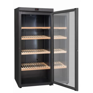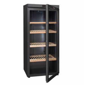 VIP380V wolnostojąca chłodziarka do wina, trzystrefowa o pojemności do 273 butelek wina. Oświetlenie LED po obu stronach komory chłodzenia, zapewnia dobre podświetlenie butelek wina.