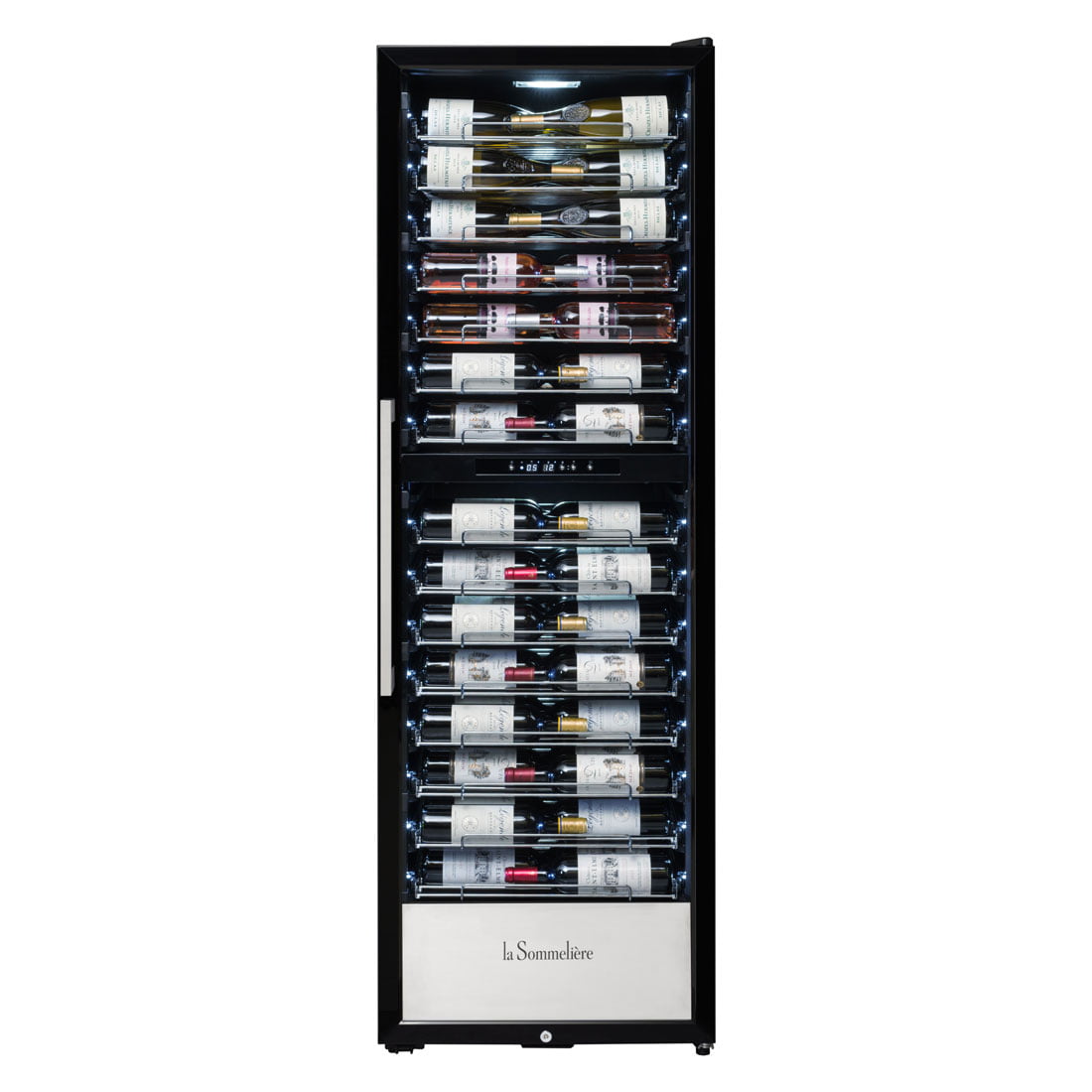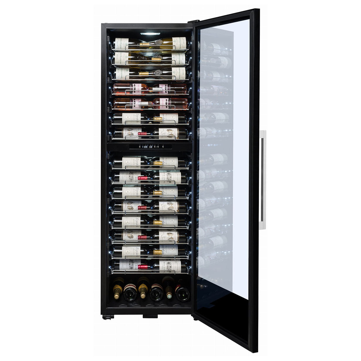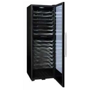 Wolnostojąca, dwustrefowa winiarka PRO160DZ do serwowania wina, o pojemności do 152 butelek wina. Przeznaczona dla profesjonalistów i restauracji. W chłodziarce butelki wina ułożone są blisko szyby drzwi z widocznymi etykietami, co umożliwia pełną prezentację karty win dla klientów. Oświetlenie każdej półki białym światłem LED, lepiej eksponuje przechowywane wina. 15 wysuwanych półek umożliwia dobry dostęp do każdej butelki wina.