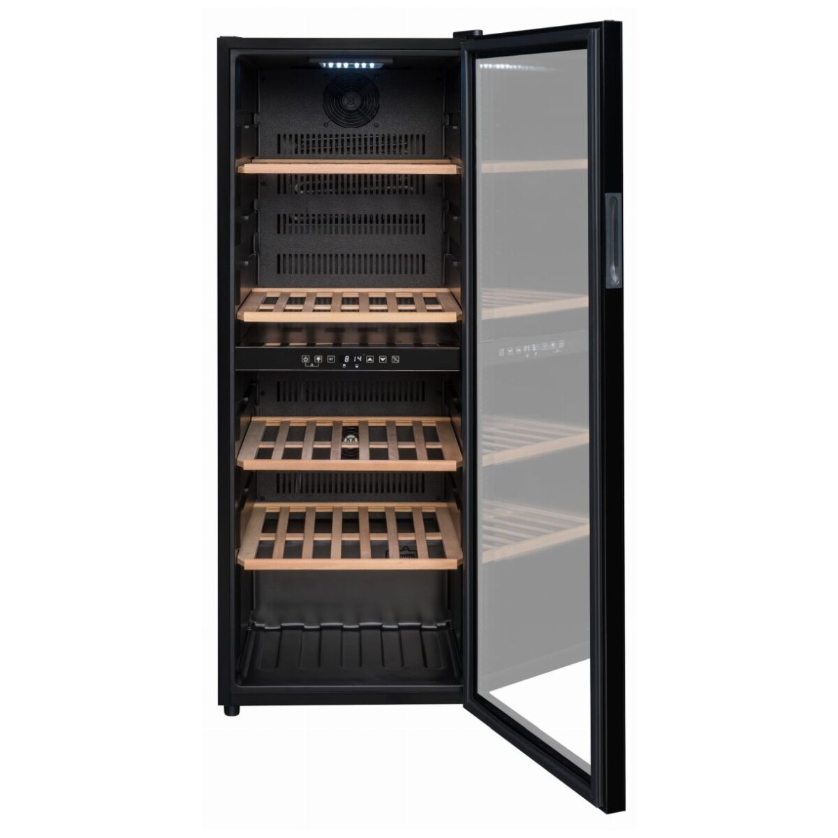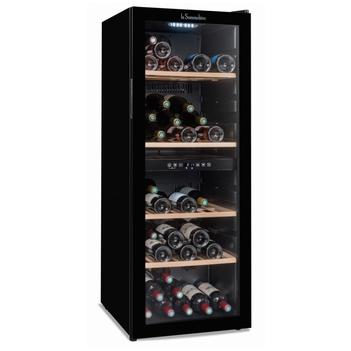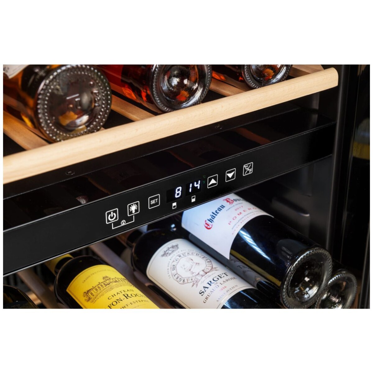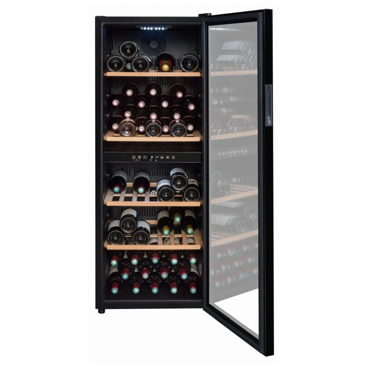 - Maksymalna liczba butelek (0,75l): 91 (górna strefa 49, dolna 42)