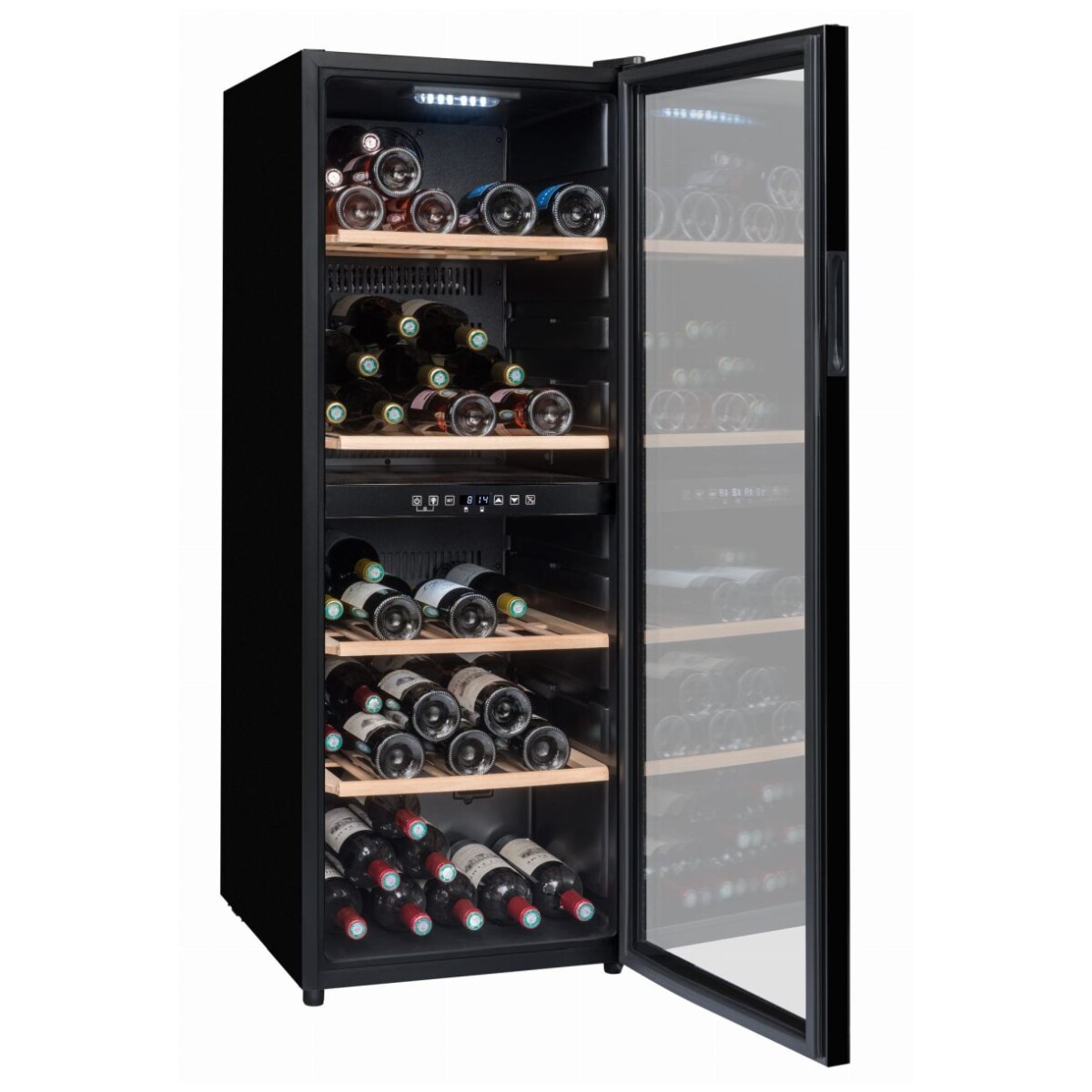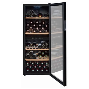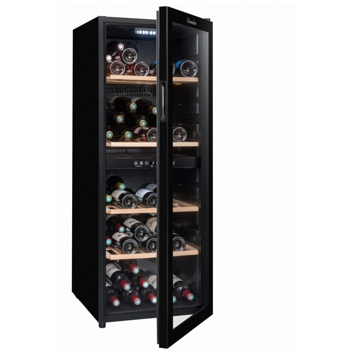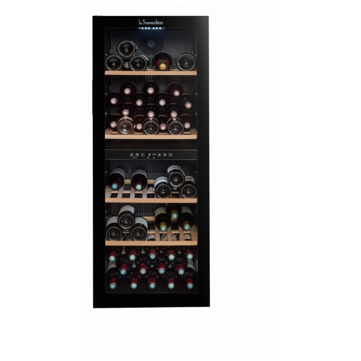 - Maksymalna liczba butelek (0,75l): 91 (górna strefa 49, dolna 42)