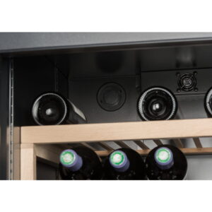 VIP330V wolnostojąca chłodziarka do wina, trzystrefowa o pojemności do 329 butelek wina. Oświetlenie LED po obu stronach komory chłodzenia, zapewnia dobre podświetlenie butelek wina.