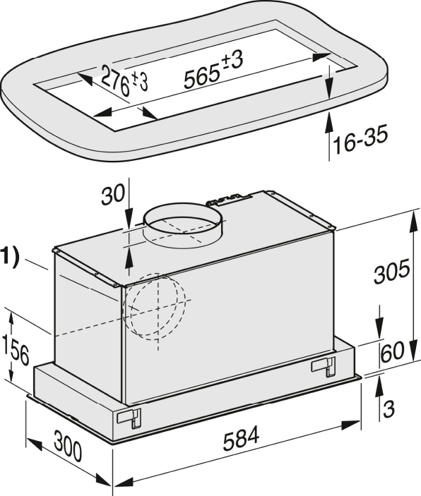 | Szerokość korpusu okapu w mm |