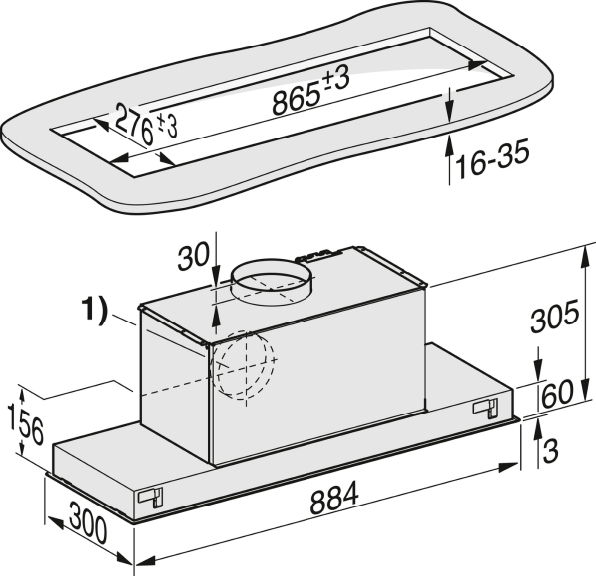Głębokość korpusu okapu w mm