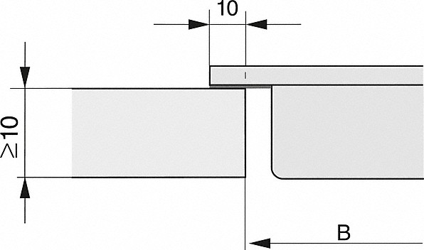 Wymiary wycięcia w mm (głębokość) przy zabudowie nablatowej