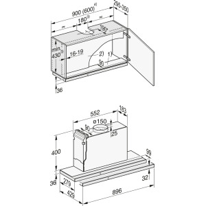 | Odstęp minimalny nad płytami gazowymi (maks. 12,6 kW mocy łącznej, palniki ≤ 4,5 kW) w mm |