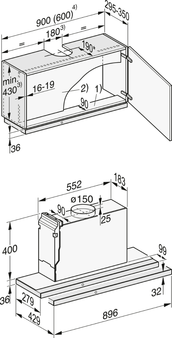 | Odstęp minimalny nad elektrycznymi płytami grzejnymi w mm |