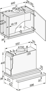 | Odstęp minimalny nad płytami gazowymi (maks. 12,6 kW mocy łącznej, palniki ≤ 4,5 kW) w mm |