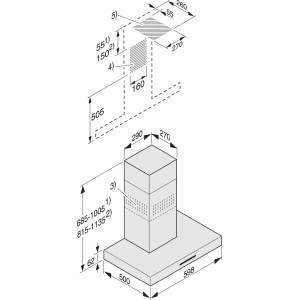 | Całkowita wysokość okapu w obiegu zamkniętym w mm |