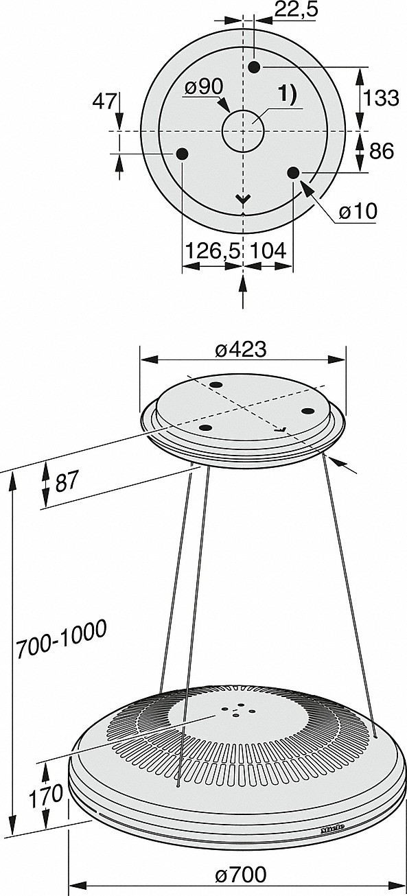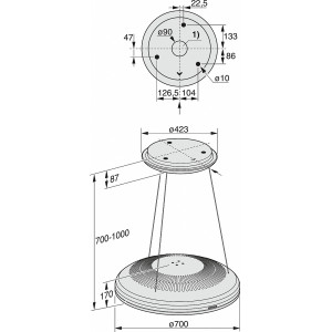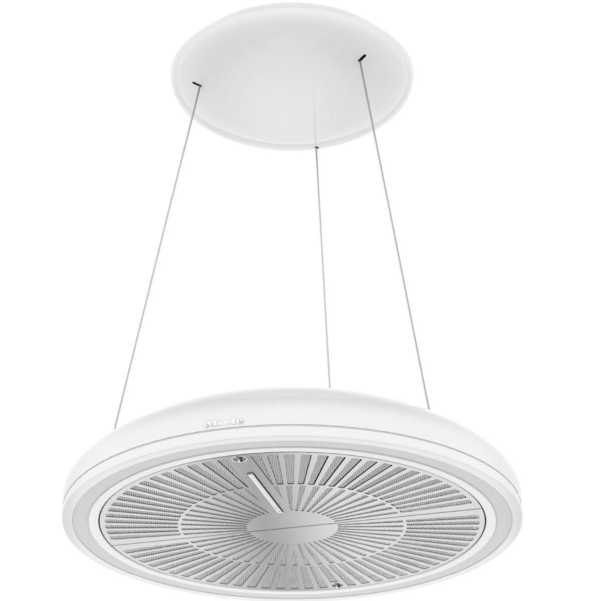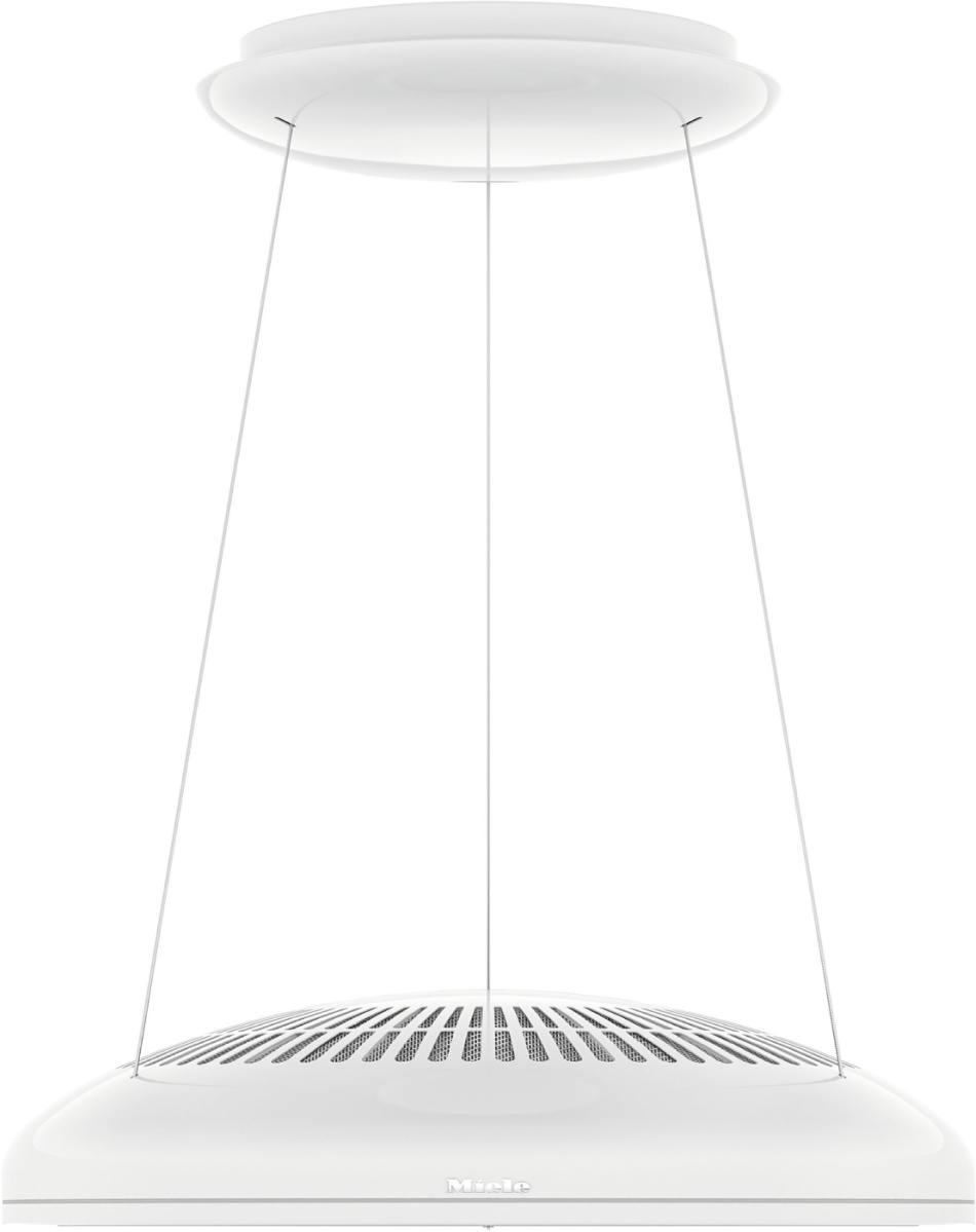 Wyciąg wyspowy ze specjalnym zawieszeniem na drobnych linkach i zintegrowanym zasilaniem.