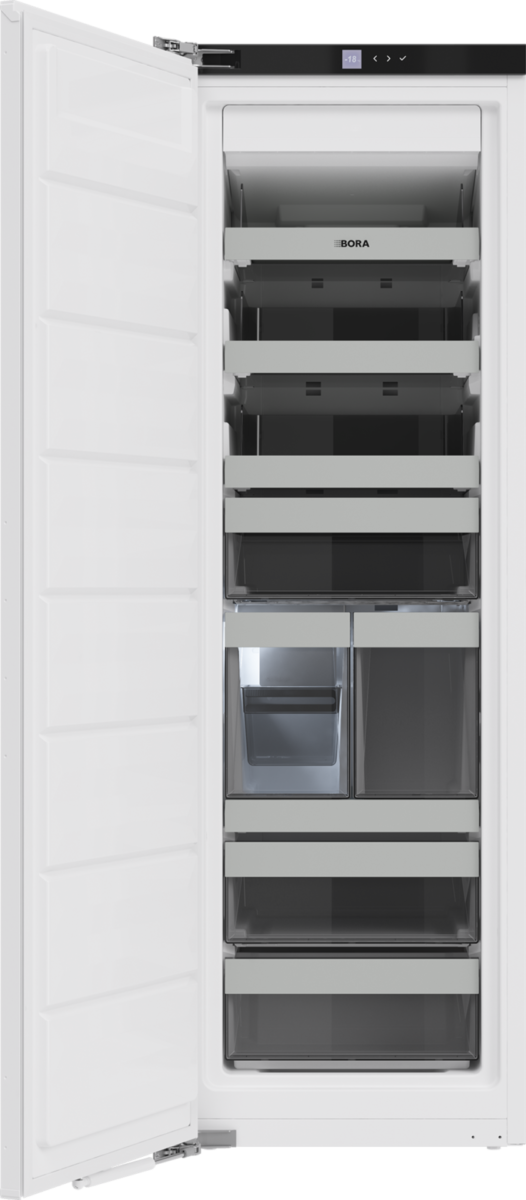 Zamrażarka BORA Freeze F178GW to wysoce funkcjonalne urządzenie zintegrowane z łącznością BORA Connect, zapewniające łatwe korzystanie oraz wysoką jakość. Dzięki kostkarce do lodu z możliwością podłączenia do sieci wodociągowej, zapewnia ona nieprzerwaną dostawę lodu. Dodatkowo, dzięki funkcji No Frost utrzymanie czystości jest prostsze, a wybrane materiały i kolory nadają jej elegancki wygląd. Ergonomiczna konstrukcja umożliwia łatwe demontaż części bez zbędnych zamków, a obsługa odbywa się za pomocą dotykowego interfejsu HMI. Zastosowanie wszechstronnego pakietu akcesoriów i funkcji zapewnia wyjątkową elastyczność w użytkowaniu, a proste czyszczenie ułatwia utrzymanie urządzenia w czystości.