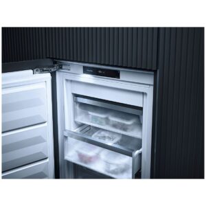 Prezentujemy zamrażarkę do zabudowy zintegrowanej Miele FNS 7794 D R (SKU 12449060) zaprojektowaną dla perfekcyjnej integracji w każdej kuchni. Urządzenie o wysokości 1770 mm szerokości 559 mm i głębokości 546 mm doskonale pasuje do wnęk o wysokości od 1777 do 1793 mm szerokości od 560 do 570 mm i głębokości 550 mm gwarantując estetyczne zlicowanie z linią mebli kuchennych.