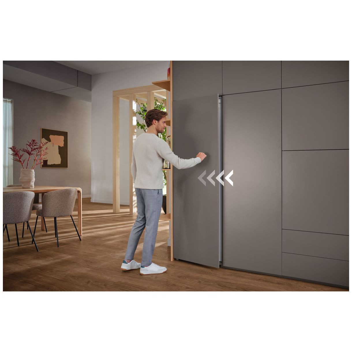 ActiveDoor automatycznie otwiera i zamyka drzwi urządzenia po komendzie głosowej lub zapukaniu. Dzięki Miele@home zamrażarka do zabudowy FNS 7794 D R 12449060 łączy się z domową siecią umożliwiając zdalne sterowanie. Obsługa odbywa się poprzez dotykowy interfejs FreshTouch.