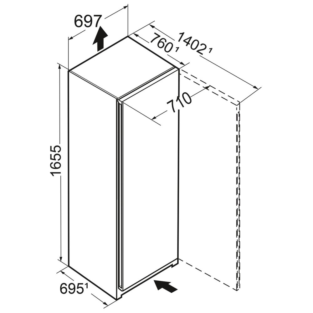 Wymiary zewnętrzne: wysokość / szerokość / głębokość 165,5 / 69,7 / 76 cm