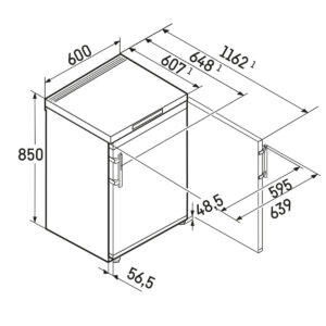 Wymiary zewnętrzne: wysokość / szerokość / głębokość 85 / 60 / 60,7 cm