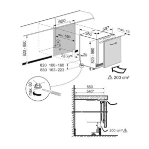 Wymiary wnęki wysokość/szerokość/głębokość 82 – 88 / 60 / 55,0 cm