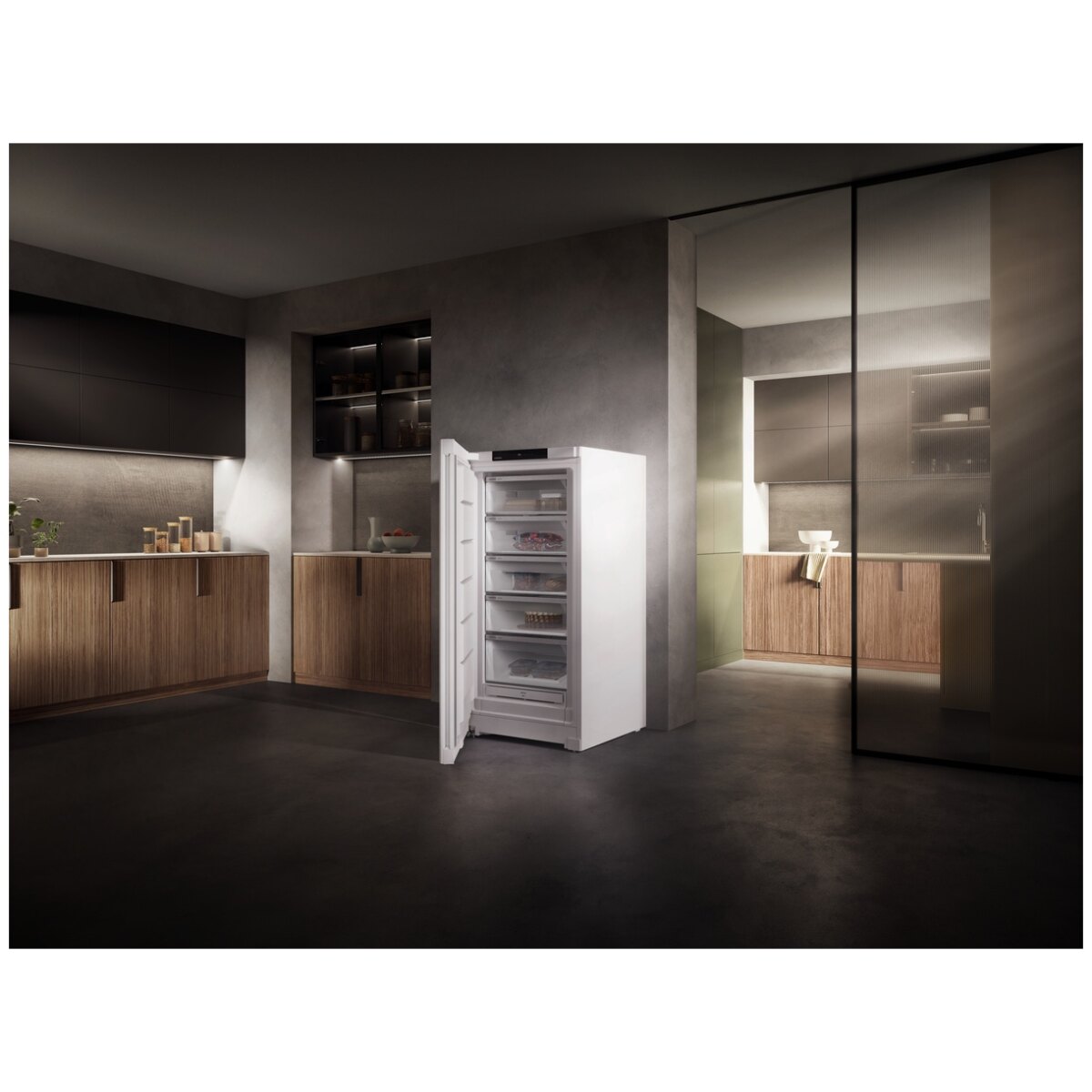 FrostSafe zamknięte ze wszystkich stron półki wysuwane z przezroczystymi frontami