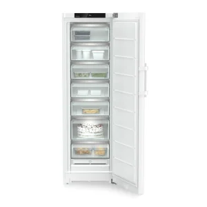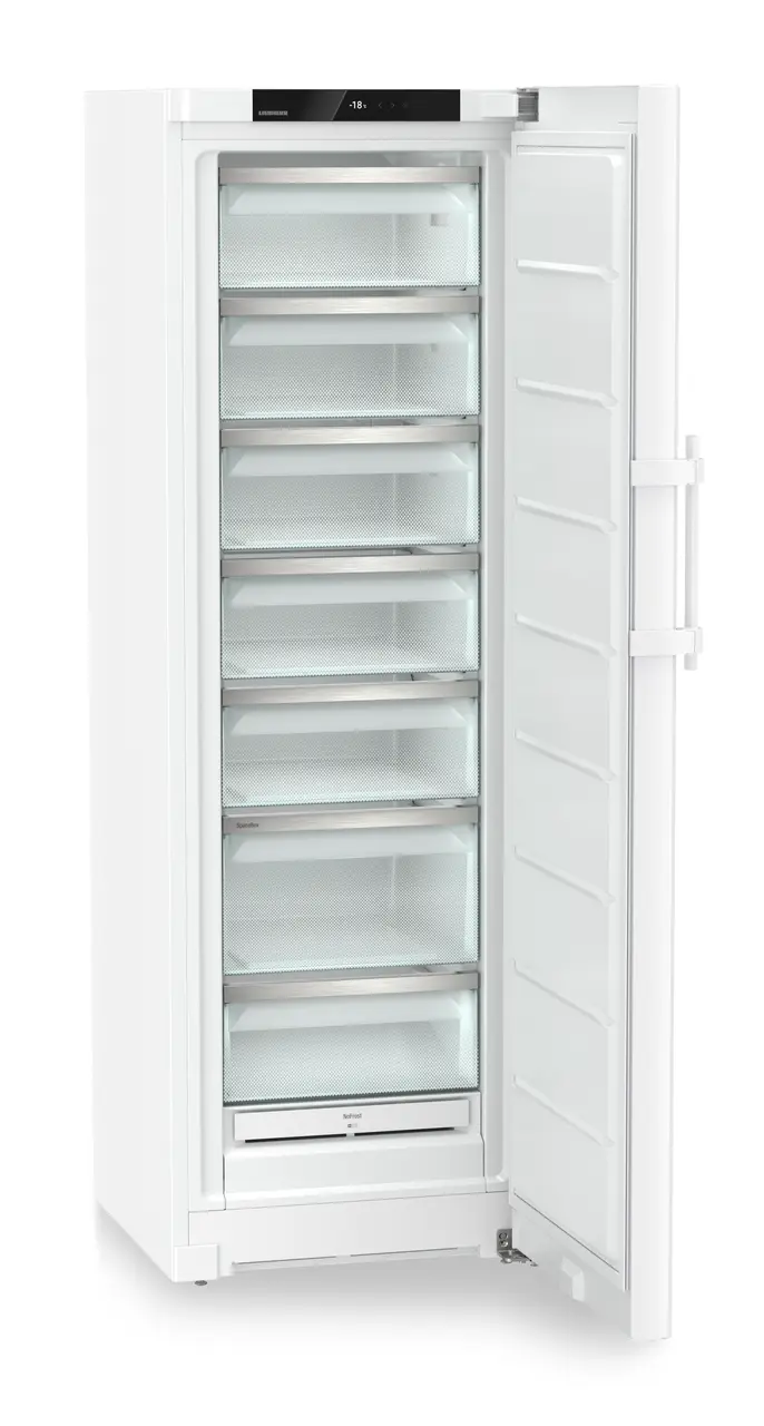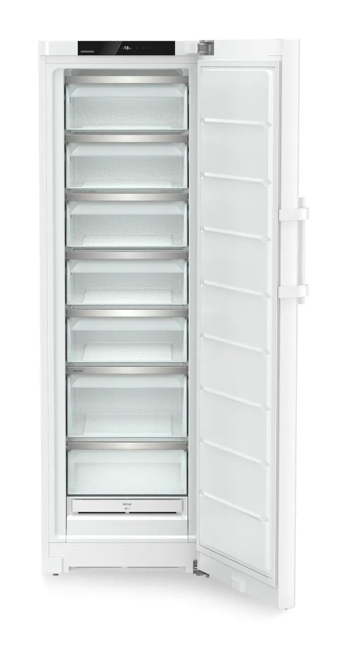 Wolnostojąca zamrażarka Liebherr FNd 5237 z serii Plus to zaawansowane urządzenie chłodnicze zaprojektowane z myślą o pełnej integracji z nowoczesną zabudową kuchenną. Dzięki technologii InteriorFit, o wymiarach wysokość 185,5 cm, szerokość 59,7 cm oraz głębokość 67,5 cm, urządzenie w kolorze białym może zostać ustawione w jednej linii z frontami meblowymi, zachowując estetyczną spójność wnętrza.