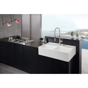 Niezależnie od tego, czy jest to wersja jedno- czy dwukomorowa, klasyczny zlewozmywak nadaje kuchni ponadczasowego charakteru. Doskonale prezentuje się zarówno w tradycyjnym stylu wiejskiego domu, ale także idealnie pasuje do wyrazistego wzornictwa nowoczesnej miejskiej kuchni. Dzięki wyjątkowemu wzornictwu stanowi centralne miejsce każdej kuchni. Prezentowany zlewozmywak posiada dwie obszerne, zamykane komory, które gwaranują maksymalną funkcjonalność oraz transparentny pojemnik – niezwykle przydatny na odpadki.