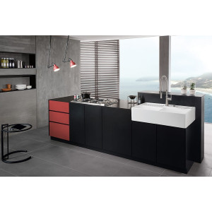 Niezależnie od tego, czy jest to wersja jedno- czy dwukomorowa, klasyczny zlewozmywak nadaje kuchni ponadczasowego charakteru. Doskonale prezentuje się zarówno w tradycyjnym stylu wiejskiego domu, ale także idealnie pasuje do wyrazistego wzornictwa nowoczesnej miejskiej kuchni. Dzięki wyjątkowemu wzornictwu stanowi centralne miejsce każdej kuchni. Prezentowany zlewozmywak posiada dwie obszerne, zamykane komory, które gwaranują maksymalną funkcjonalność oraz transparentny pojemnik – niezwykle przydatny na odpadki.
