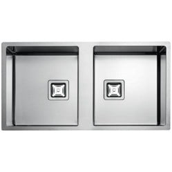 Zlewozmywak 2 komorowy bez ociekacza, nieodwracalny, prostokątne odpływy manualne, bez otworów do montażu baterii, głębokość komór 20 cm, promień zewnętrzny narożnika kołnierza 10 cm, pasuje do płyt inox serii CPH, możliwy montaż na blacie i na równi z blatem, syfon w zestawie