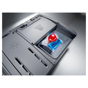 Praca urządzenia opiera się na wydajności, co potwierdza klasa efektywności energetycznej B oraz niskie zużycie wody w litrach na cykl programu Eco wynoszące 9.0 l. Zaawansowany sposób suszenia PerfectDry - Zeolith sprawia, że nawet plastikowe naczynia wyjmowane są całkowicie suche i gotowe do schowania do szafek, co oszczędza czas na ręczne wycieranie. Wszystko to odbywa się przy zachowaniu wysokiej kultury pracy, gdzie poziom hałasu 40 dB(A) re 1pW sprawia, że urządzenie jest naturalnym, dyskretnym tłem dla domowego życia.
