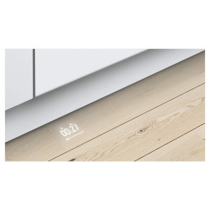 Zdalna kontrola i sterowanie Home Connect integruje Zmywarkę Bosch Serie 6 SMV6ZCX25E z siecią domową, umożliwiając wybór programów i monitorowanie cyklu z poziomu aplikacji. System TimeLight - wyświetlanie pozostałego czasu na podłodze rzuca precyzyjne dane o statusie pracy bezpośrednio na podłoże, co eliminuje konieczność otwierania frontu w pełni zintegrowanej zabudowy. Wewnątrz komory umieszczono Emotion light white, czyli oświetlenie punktowe, które ułatwia precyzyjny załadunek 14 kompletów naczyń przy słabym świetle zewnętrznym.