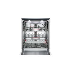 13 kompletów naczyń, 7,5 litra, 0,73 kWh, 8 programów, 6 temp.: m. wstępne, Szkło 40°C, Skrócony 45°C, Cichy 50°C, Przyśpieszony 60°C, auto 45-65°C, Garnki 70°C, 6 funkcji dodatkowych: VarioSpeed Plus, Higiena Plus, Strefa Intensywna, Ekstra Połysk Machine Care, Home Connect. Suszenie EcoZeolith. Klasy A+++A, Vario3 Pro – dodatkowy poziom załadunku, Asystent Dozowania, wymiennik ciepła, AquaSensor, Sensor załadunku, AquaStop, dwa wyświetlacze TFT (front z jęz. polski + top), Stojak na kieliszki – Glasstray, panel Piezo TouchControl stalowy, EmotionLight, programowanie czasu startu do 24 h, 3-poziomowy RackMatic, 42 db (re 1 pW), silver/inox technologia AntiFingerprint.
