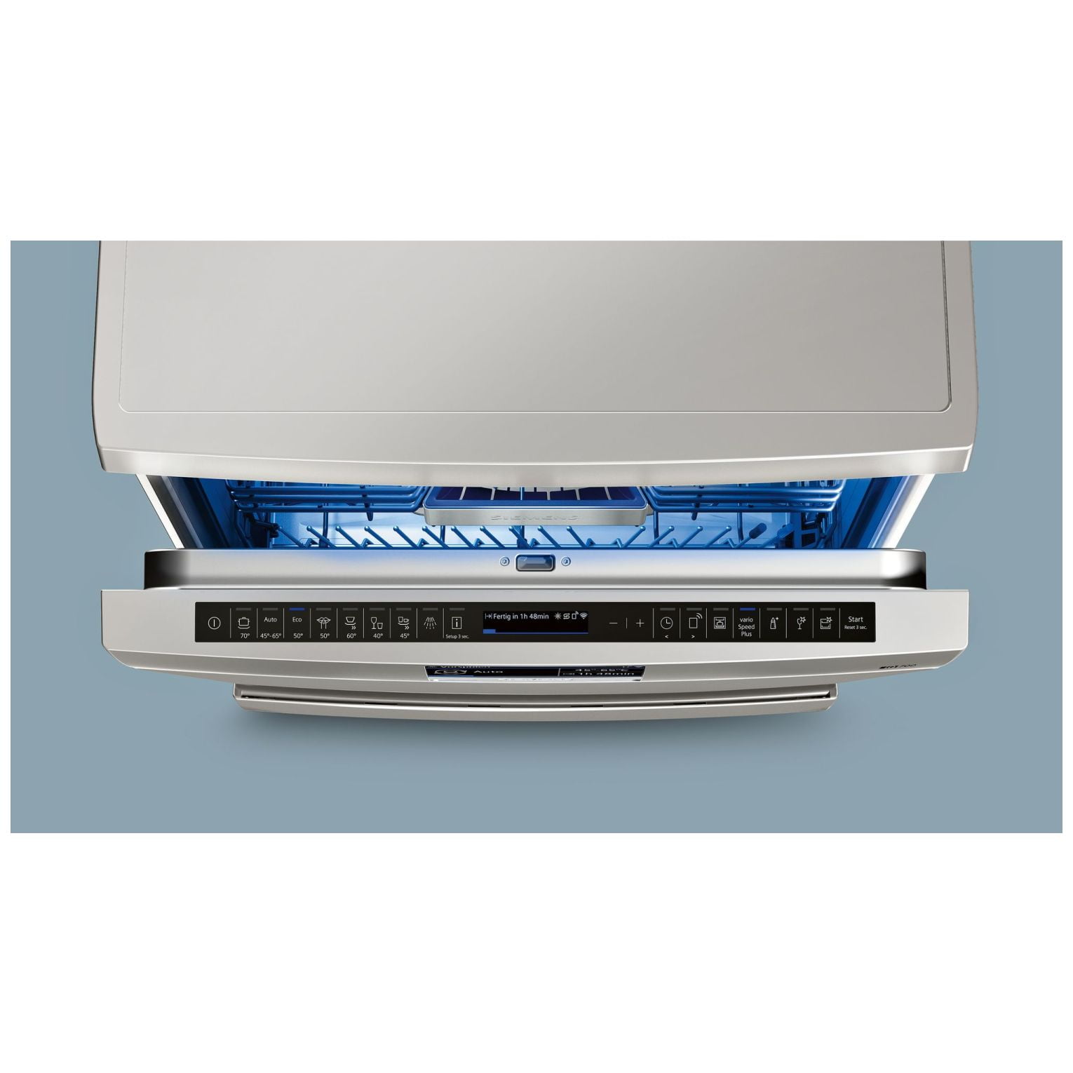 Zmywarka do zabudowy serii iQ700 o szerokości 60 cm to klasa sama w sobie. System brilliantShine z suszeniem Zeolith® sprawia, że Twoje naczynia lśnią jeszcze dłużej. Kolorowy wyświetlacz TFT o wysokiej rozdzielczości, przedstawiający symbole graficzne i zwykły tekst, pozwala na łatwe i wygodne wybieranie ustawień zmywarki. Wbudowane diody emotionLight emitują łagodne, niebieskie światło, którego blask wypełnia całe wnętrze komory zmywania. Wszystkimi funkcjami zmywarki można łatwo zarządzać zdalnie poprzez aplikację Home Connect.