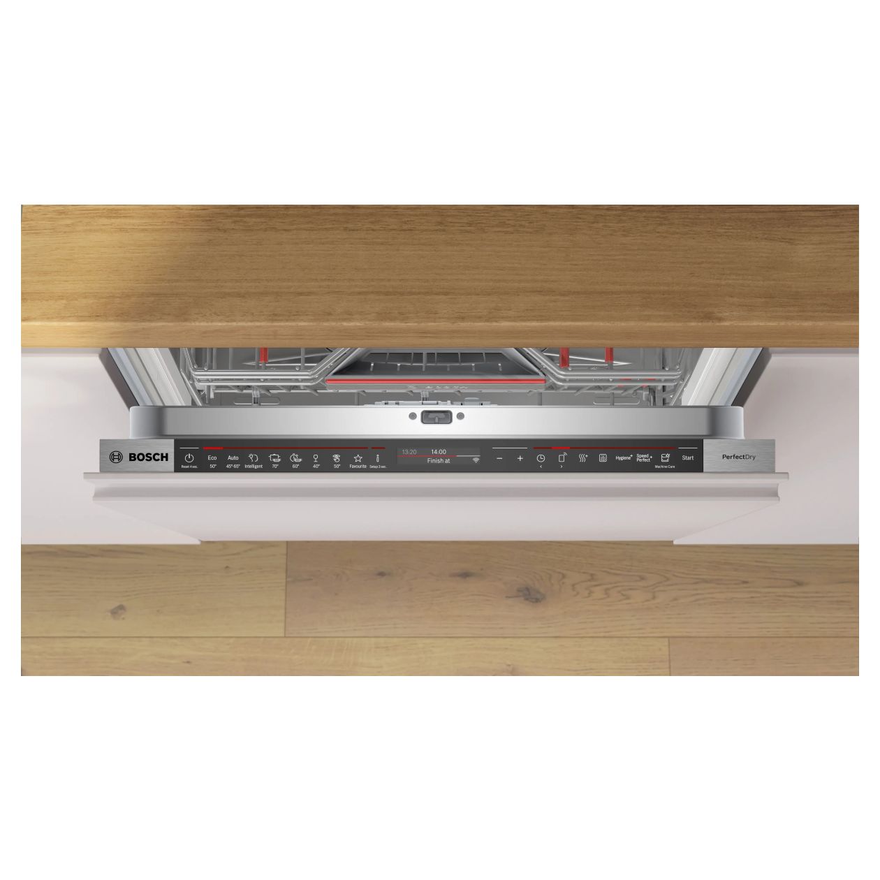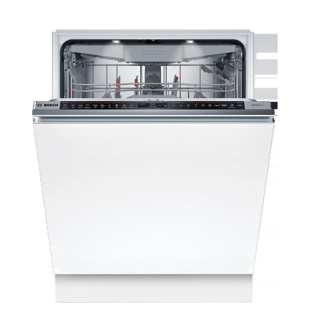Wnętrze wykonane ze stali nierdzewnej oferuje maksymalną ilość 14 kompletów naczyń, co w połączeniu z koszami MaxFlex Pro zapewnia najwyższą elastyczność załadunku. Organizację pracy wspomaga szuflada Vario3 Pro oraz 3-stopniowa regulacja wysokości górnego kosza Rackmatic. Zaawansowana metoda suszenia PerfectDry – Zeolith, EfficientDry i wymiennik ciepła gwarantuje idealną suchość naczyń bezpośrednio po cyklu. Utrzymanie urządzenia w optymalnym stanie ułatwia dedykowany program czyszczenia zmywarki MachineCare.