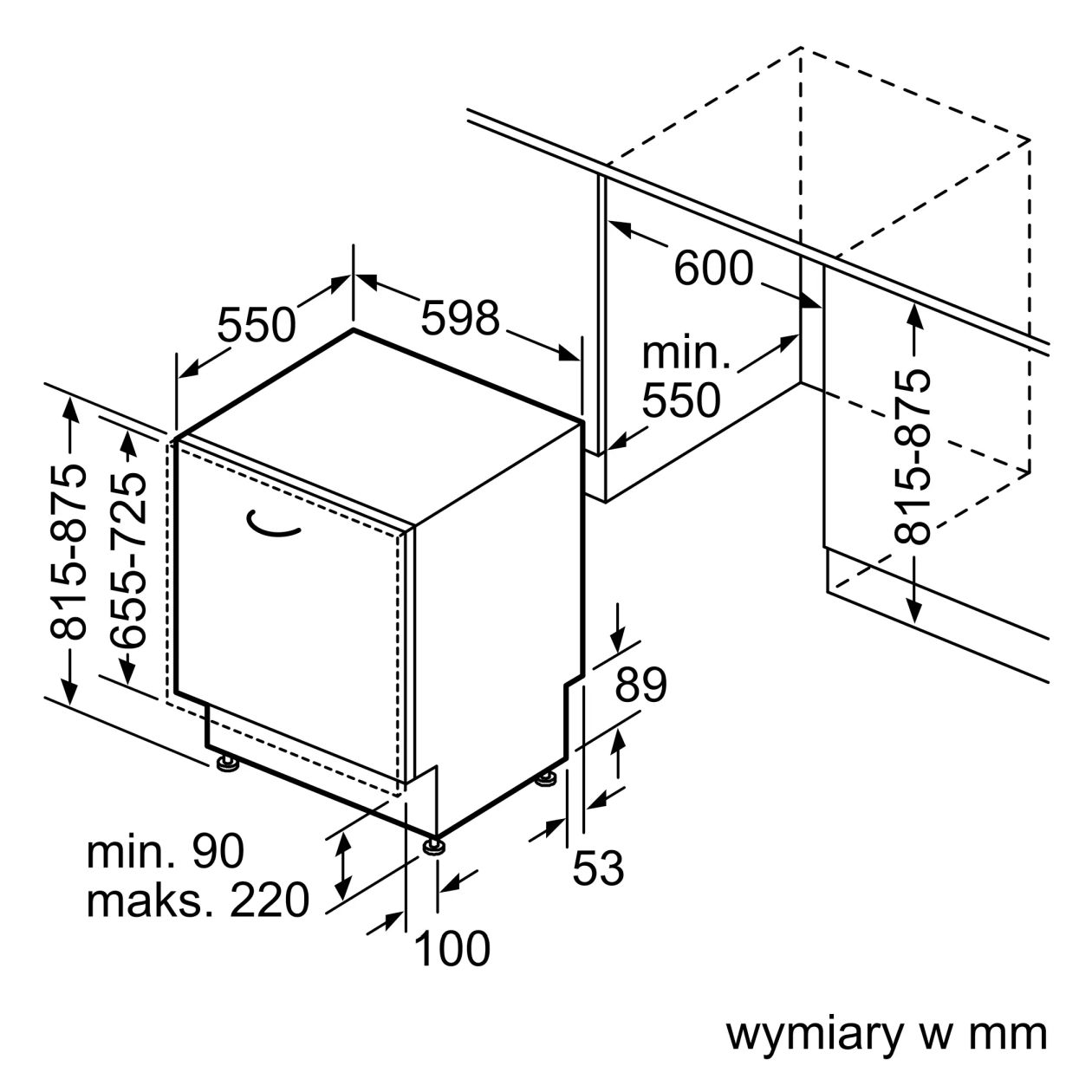 W pełni zintegrowana Zmywarka Serie 8 SMD8TCX04E o standardowej szerokości 60 cm to zaawansowane rozwiązanie do zabudowy, które dzięki wymiarom urządzenia 815x598x550 mm pozwala na estetyczne zlicowanie z linią mebli kuchennych. Konstrukcja umożliwia instalację kolumnową oraz precyzyjną regulację cokołu w pionie i poziomie, co ułatwia dopasowanie jednostki do indywidualnych projektów wnętrz.