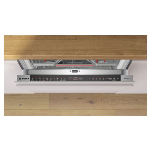 Zmywarka Serie 8 SMD8TCX04E wykorzystuje moduł Home Connect, który umożliwia zdalne sterowanie urządzeniem oraz aktywację funkcji dodatkowych, takich jak HalfLoad (połowa załadunku) czy Silence on Demand (czasowe wyciszanie). Panel sterowania wyposażony w wyświetlacz TFT oraz system OpenAssist pozwala na otwieranie drzwi poprzez lekkie naciśnięcie frontu, co eliminuje konieczność montażu uchwytów. Bieżący stan pracy sygnalizuje TimeLight, który wyświetla pozostały czas cyklu bezpośrednio na podłodze.