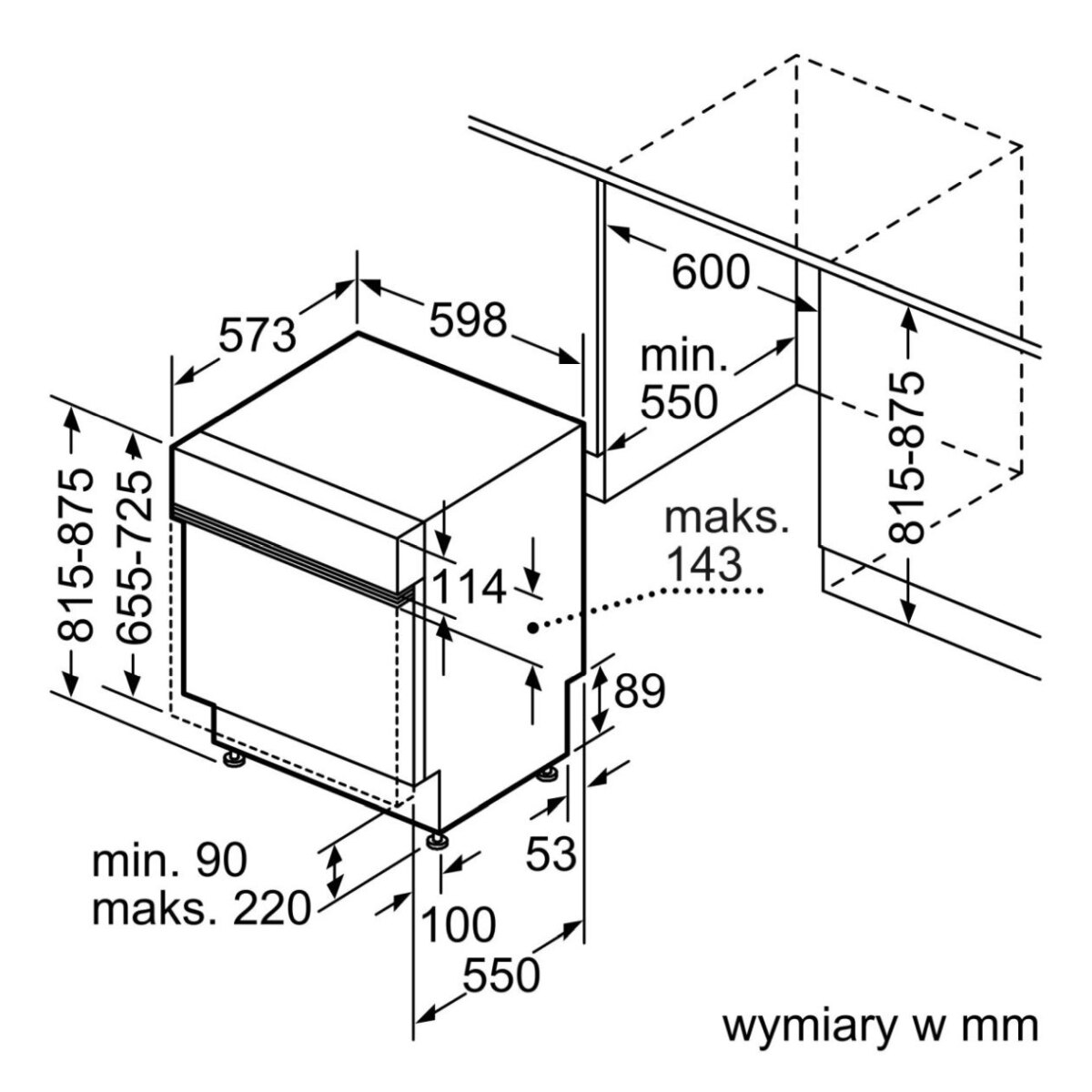 Wymagana przestrzeń instalacyjna (WxSxG) | 815–875 × 600 × 550 mm |